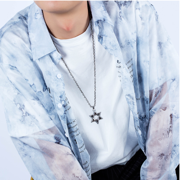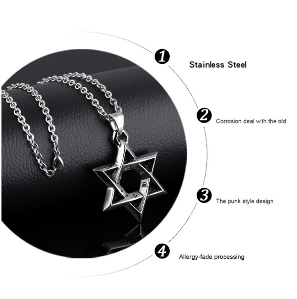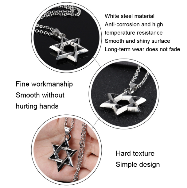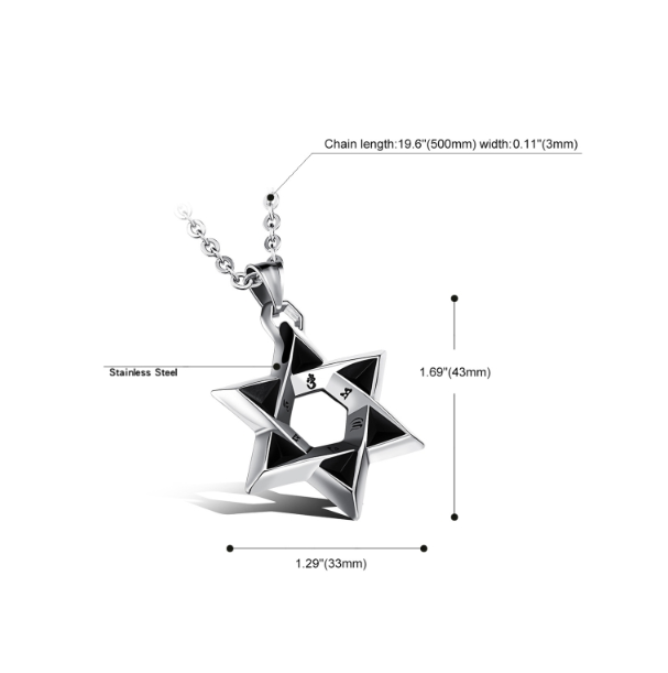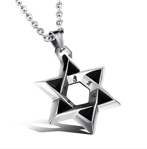 1102 Stainless Steel Necklaces Men Six Pointed Star Pendant, Style: Pendant+Chain
