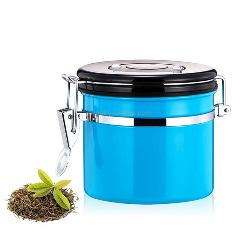 1200ml Stainless Steel Coffee Bean Sealed Canister With Air Vent Coffee Storage Tank (Color: Blue)