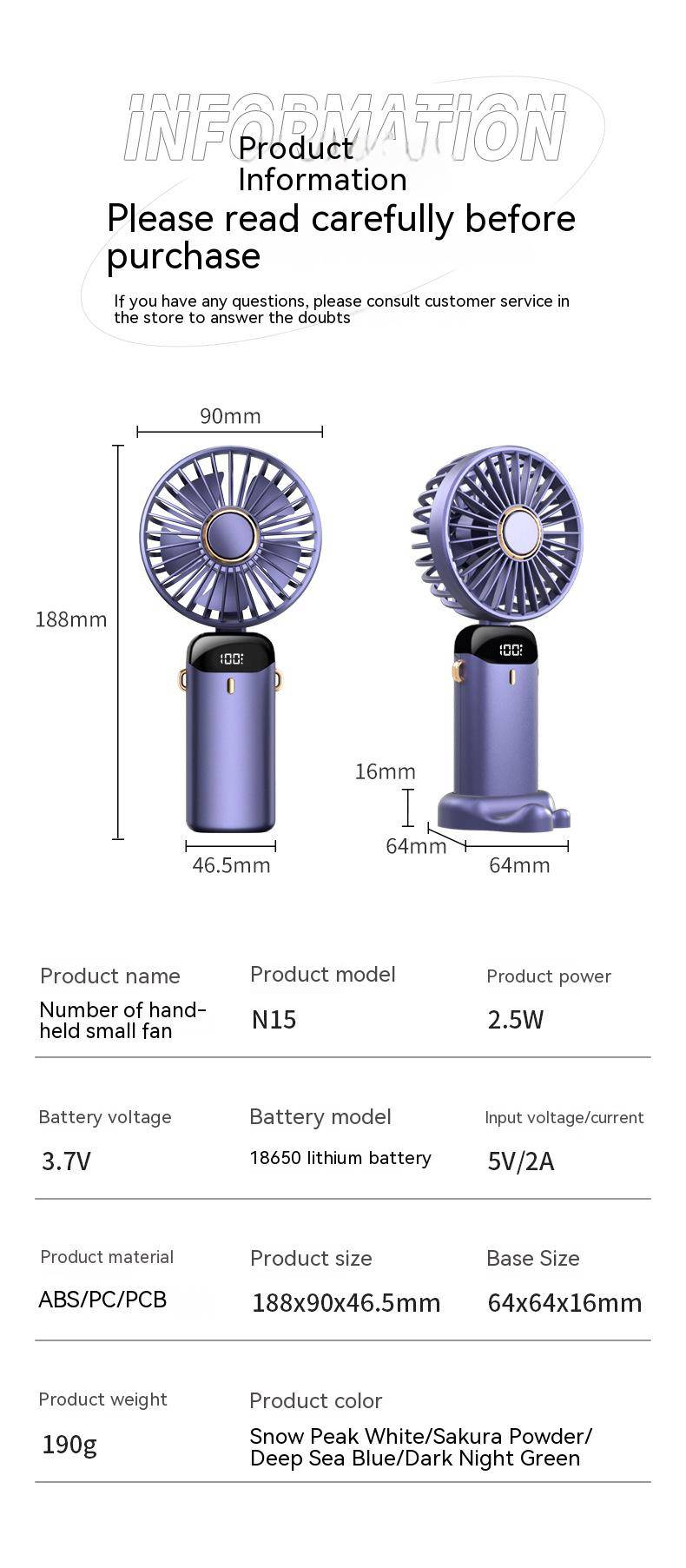 2023 new usb handheld fan mini portable student small fan digital display folding aromatherapy small electric fan