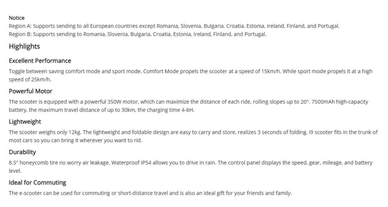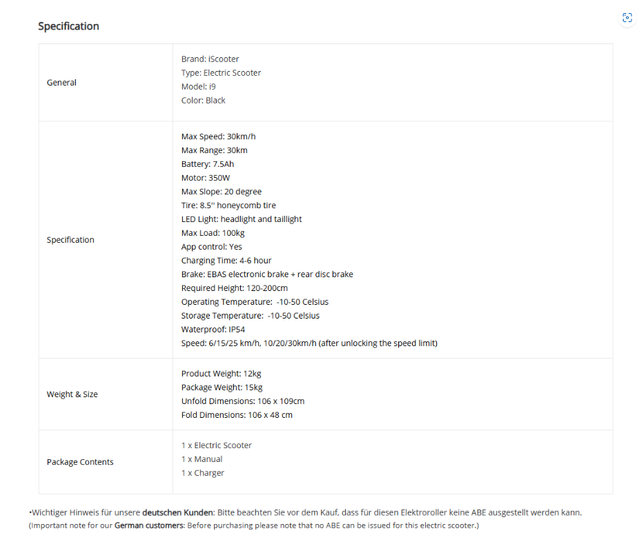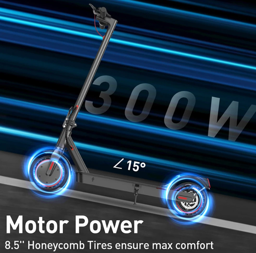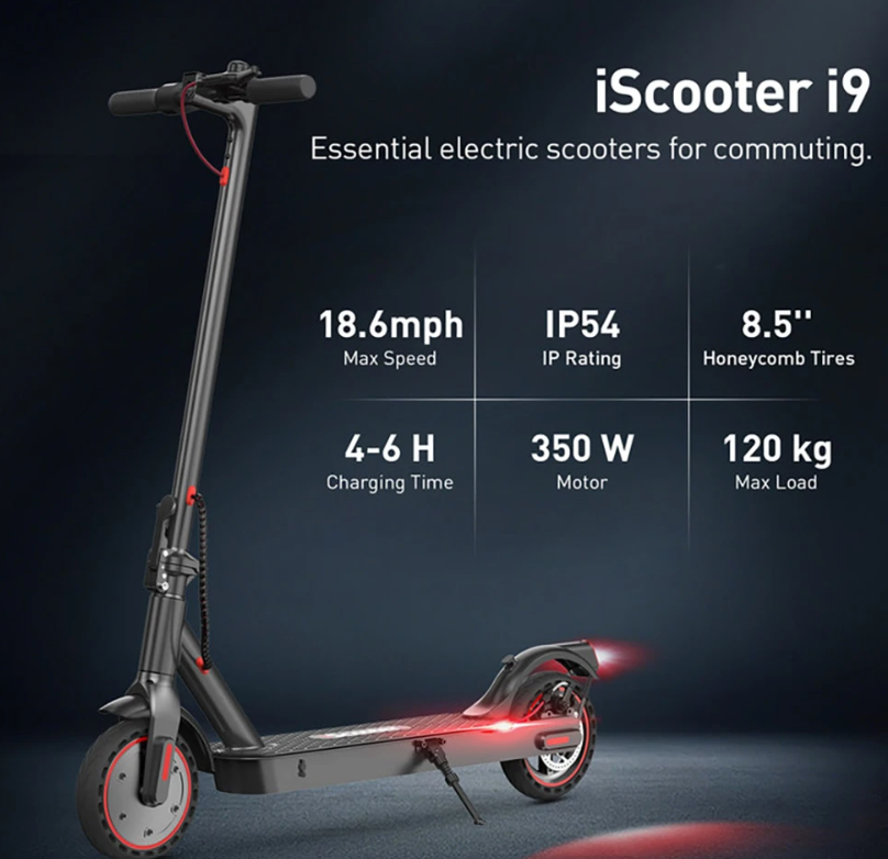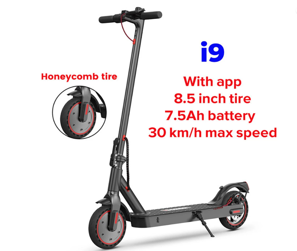 2024 iScooter i9 Folding Electric Scooter 8.5 Inch Honeycomb Tire 350W Motor 7.5Ah Battery 30km/h Max Speed APP IP54 Waterproof - Black
