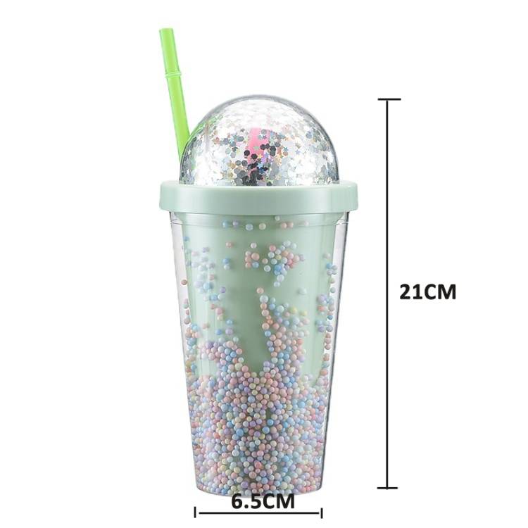 401-500ml Rainbow Bubble Straw Cup Double-layer Plastic Girly Heart Drink Bottle(Pink)