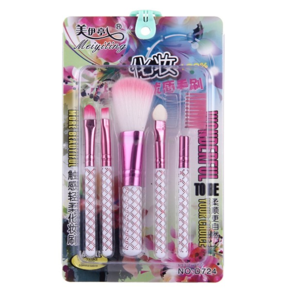 5 in 1 Pink Stripes Pattern Professional Makeup Tool Kit