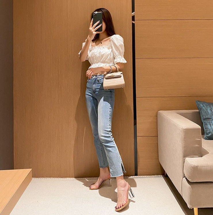9cm Heel High Women Outer Wear Sandals Summer Thick High Heel Crystal Transparent One Word Slippers Zi