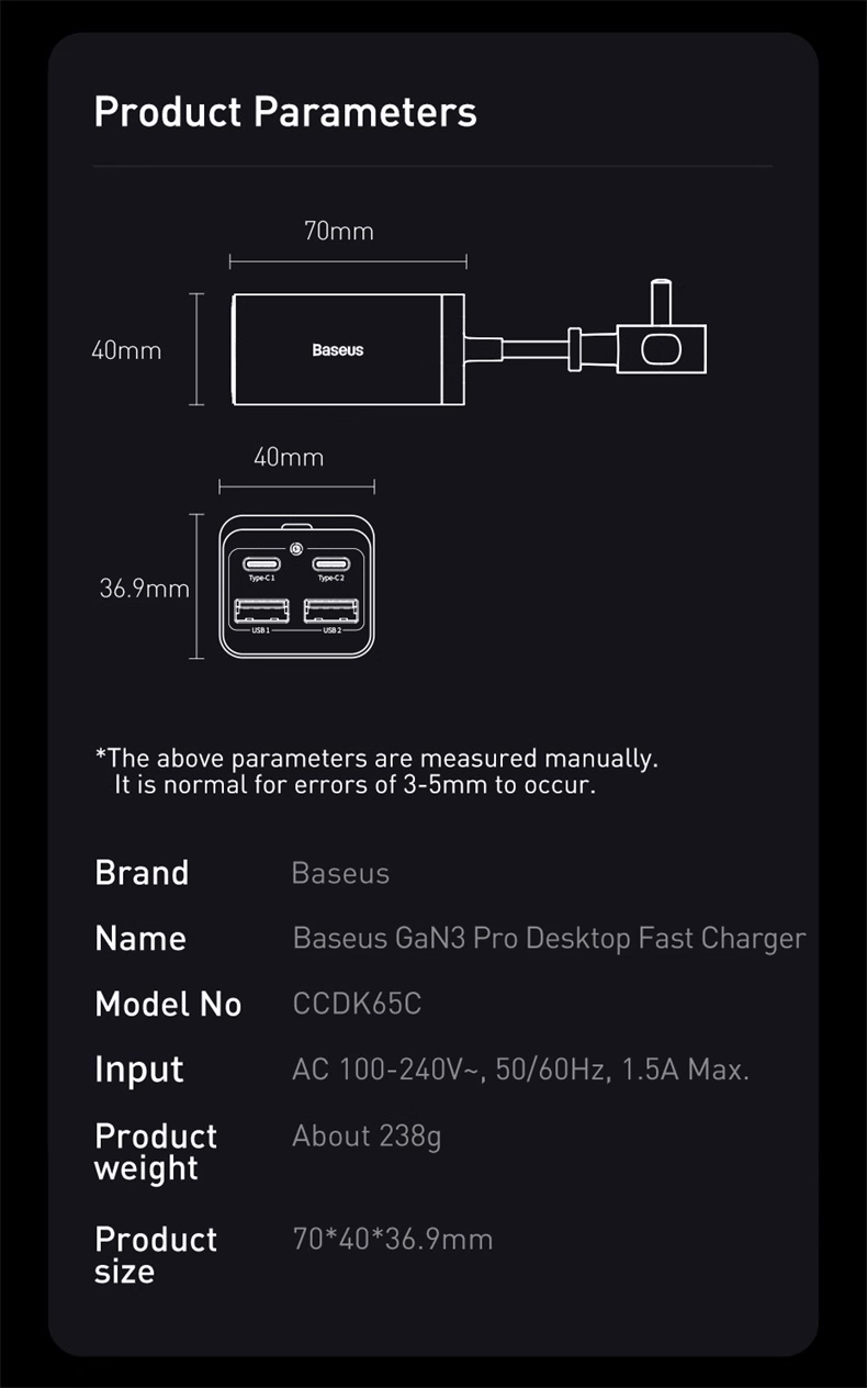 Baseus GaN Charger Desktop Laptop Charger 2USB+2Type-C