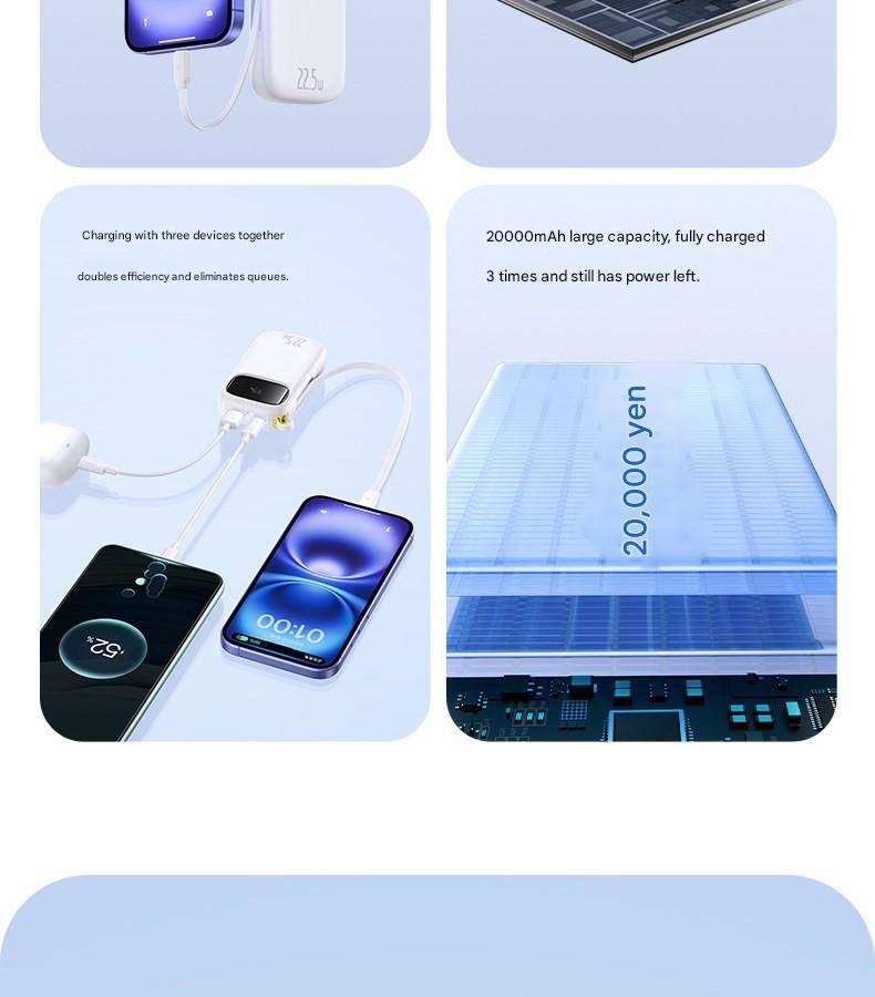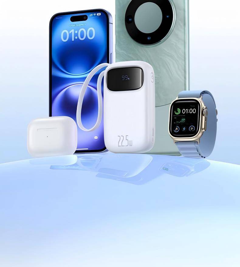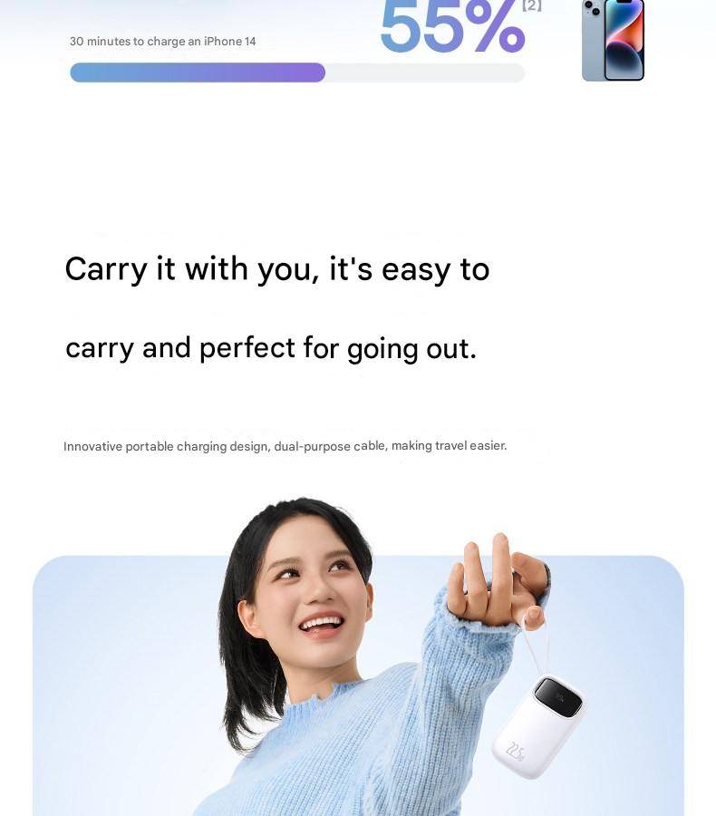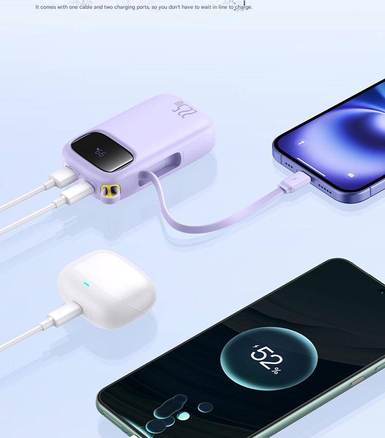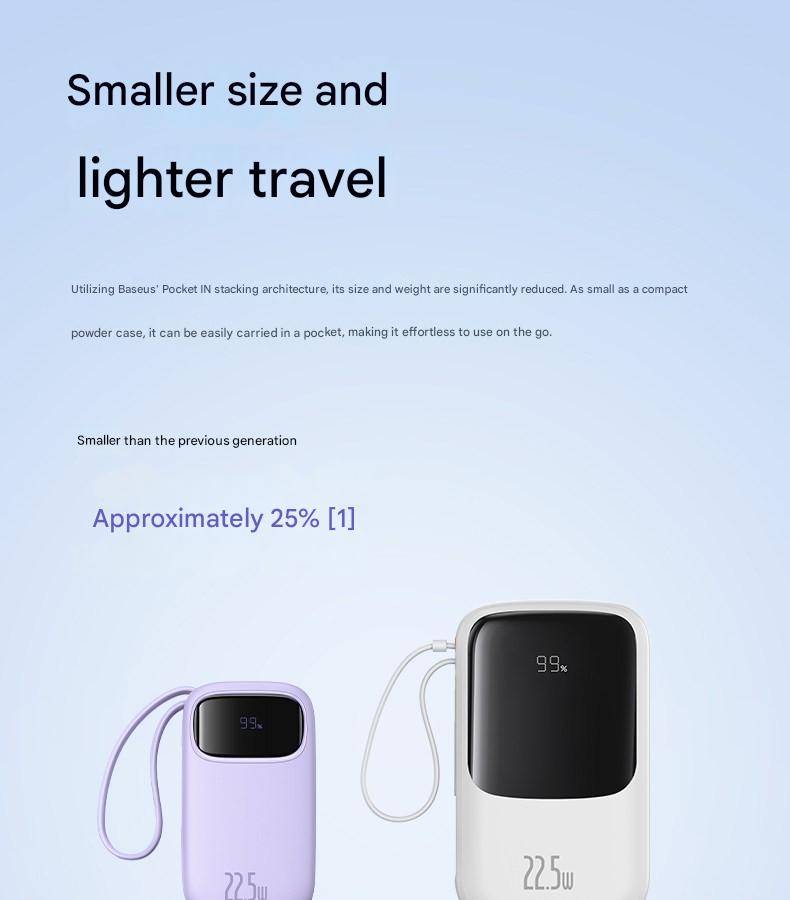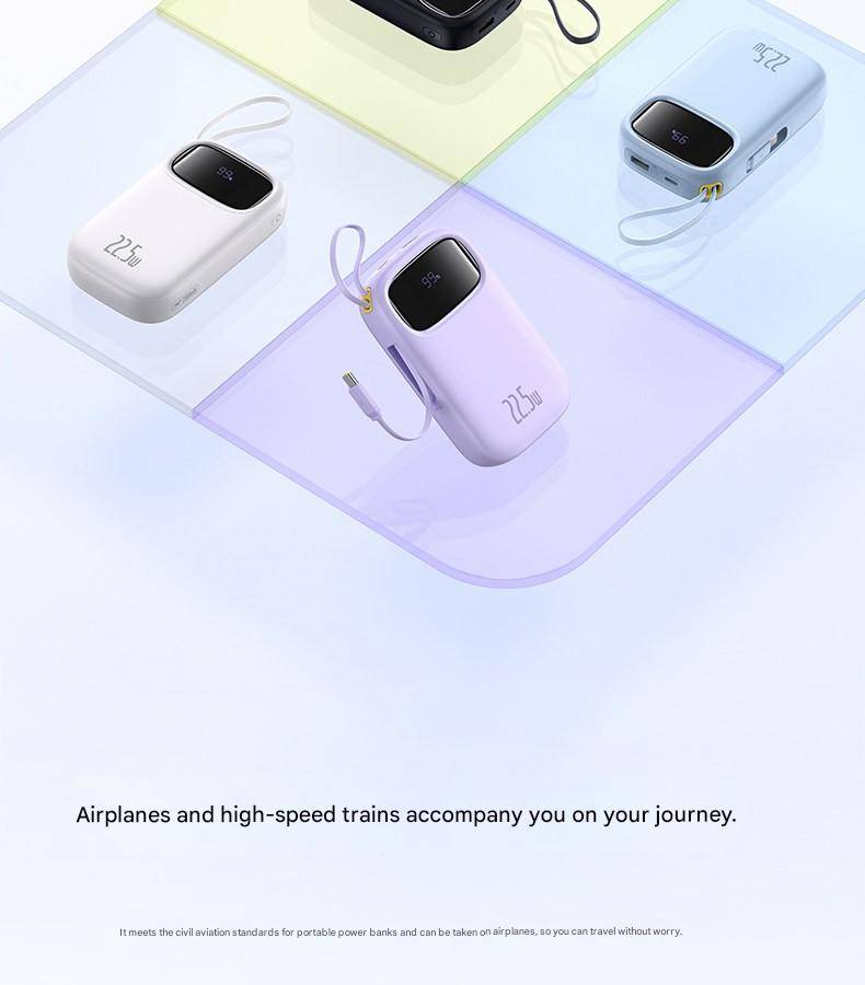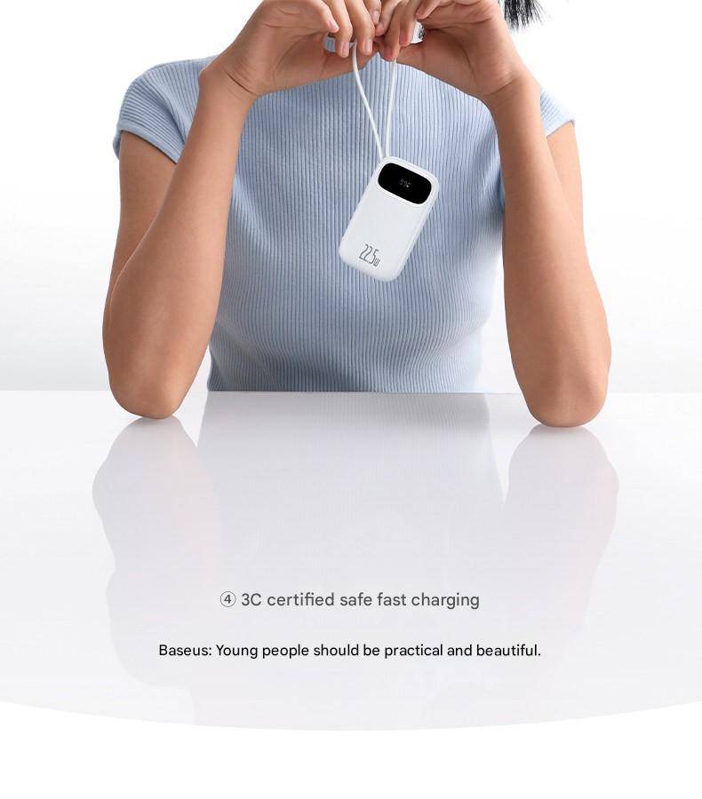 Baseus 22.5W 10000mAh 20000mAh Power Bank Built-In Retractable USB-C & Lightning Cable