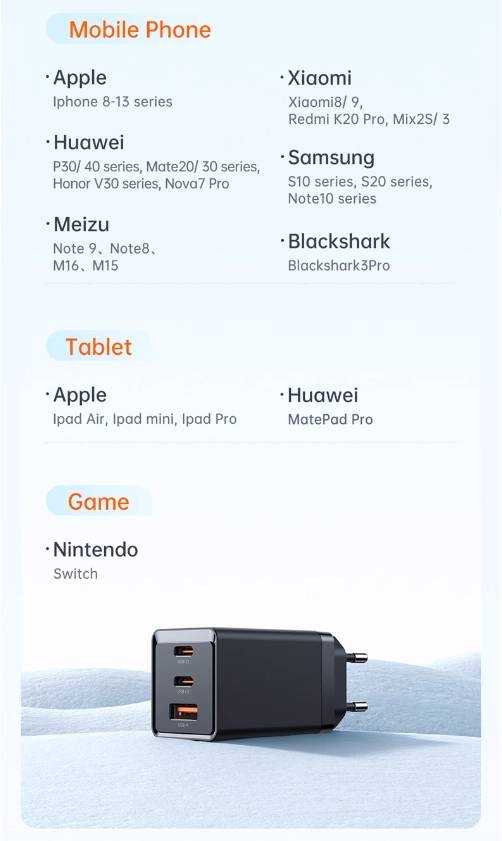 Baseus 65W Chargeur rapide USB-C Type C USB Charger Gallium Nitride Charger Fast Charging Charging Head Super Fast Charging for iPhone 14 Pro