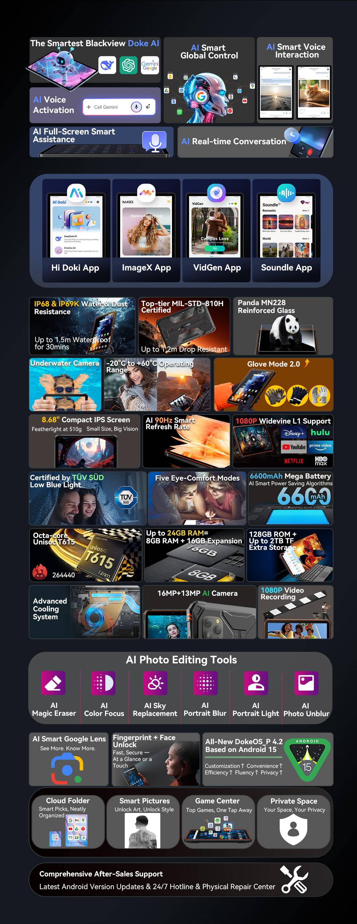Blackview Active 5 8.68'' Rugged Tablet PC, Android 15 Unisoc T615 Octa Core, 8GB RAM 128GB ROM AI Mini Pad, 6600mAh/18W