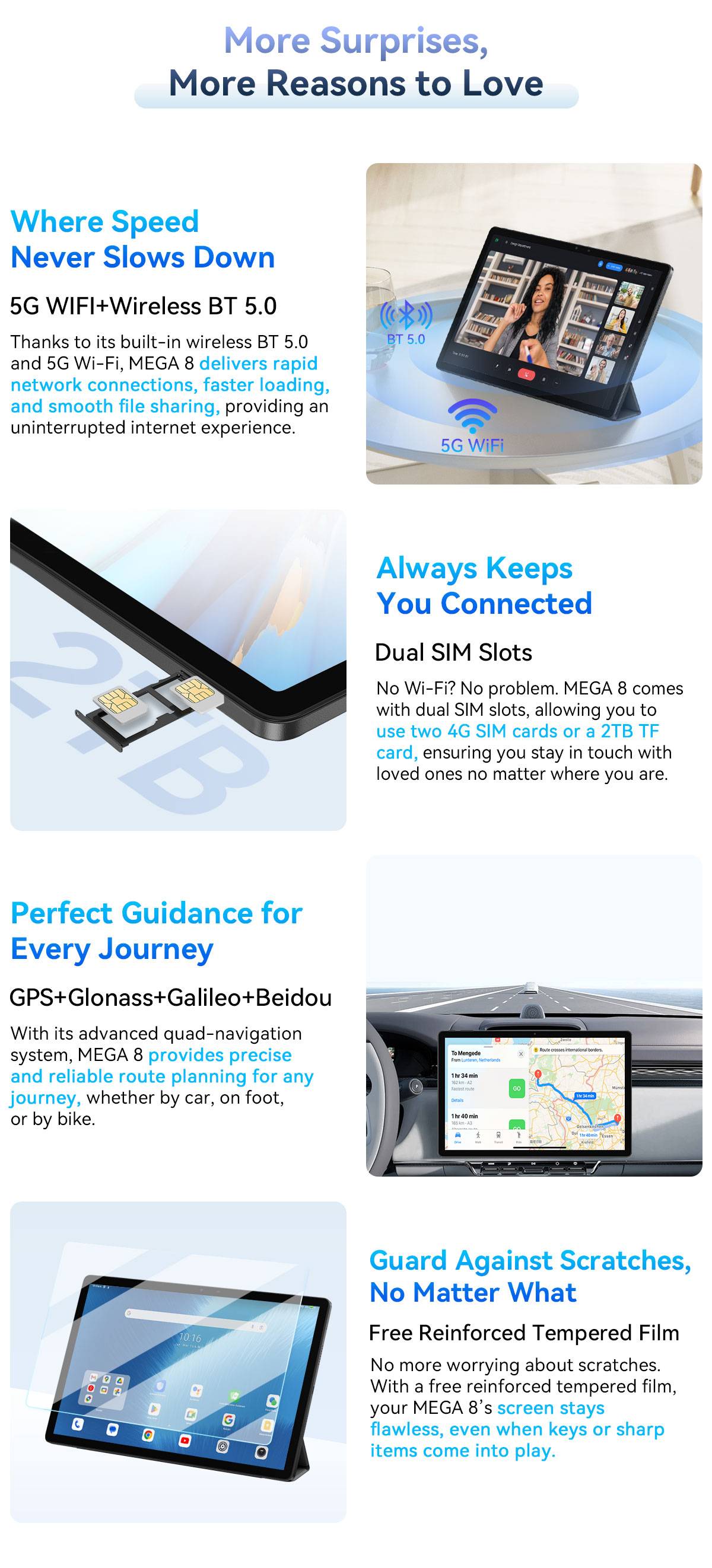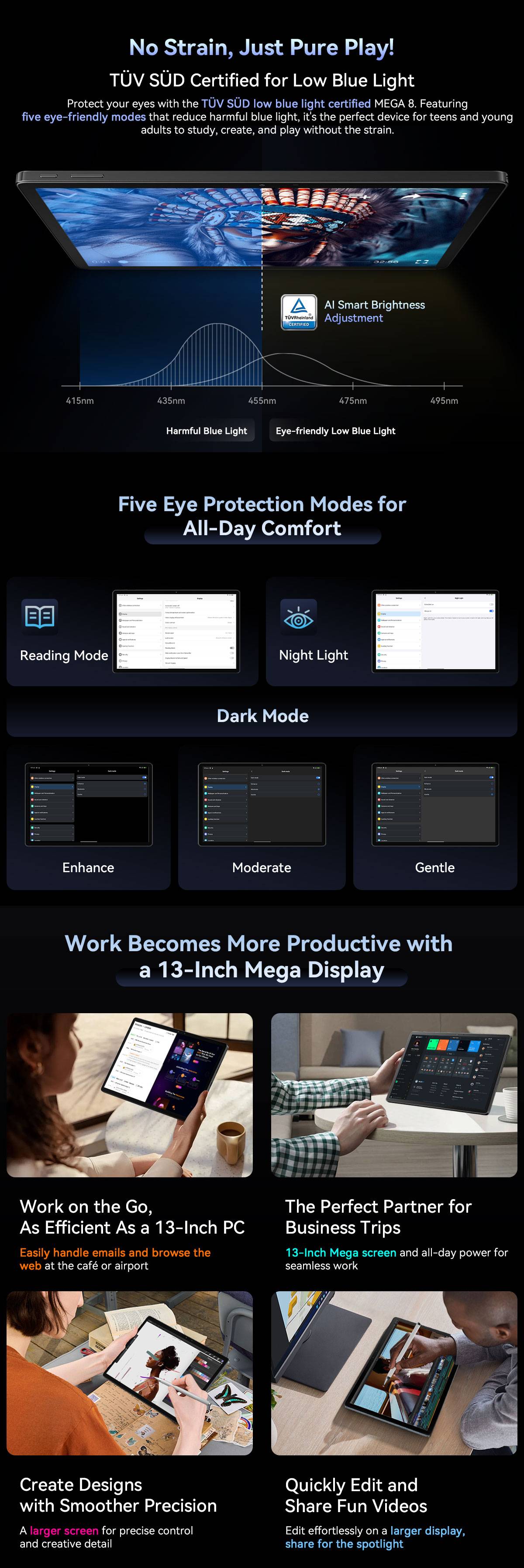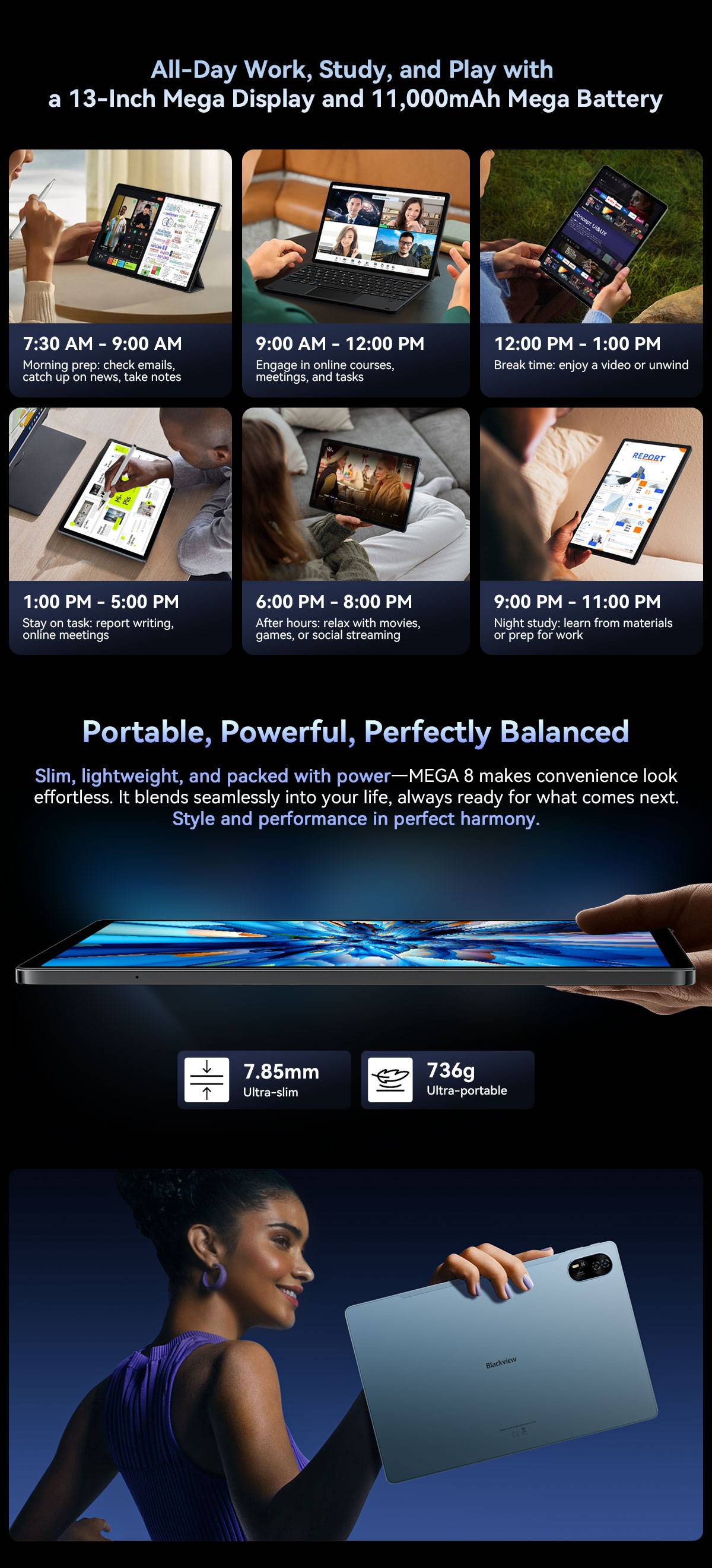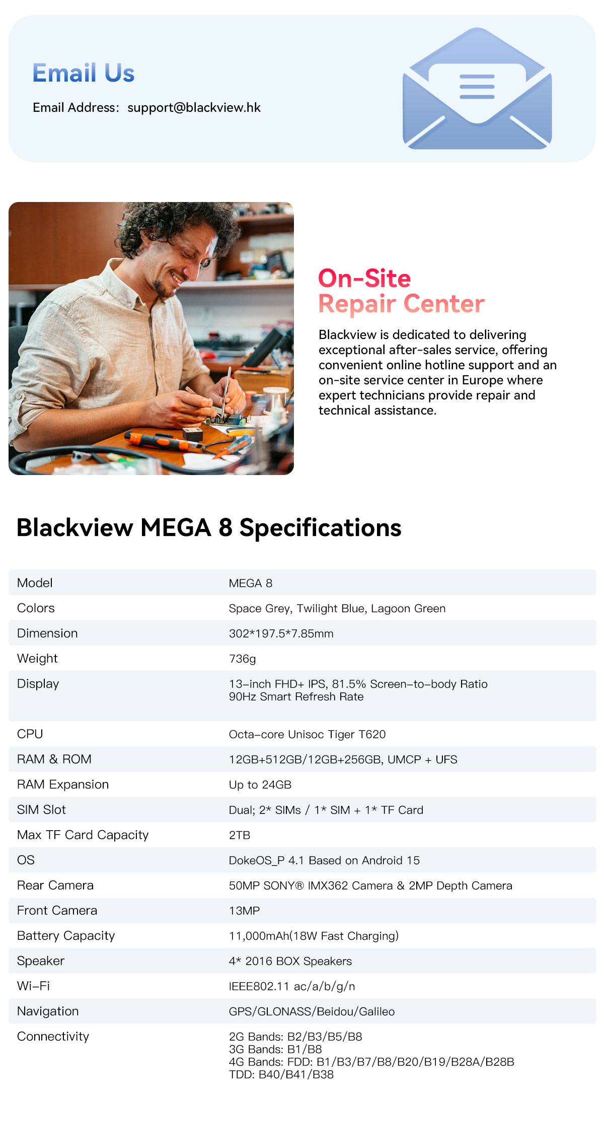 Blackview MEGA 8 4G 13-inch Unisoc T620 Octa-core 12GB+256/512GB 11000mAh Netflix HD Support Android Tablet PC