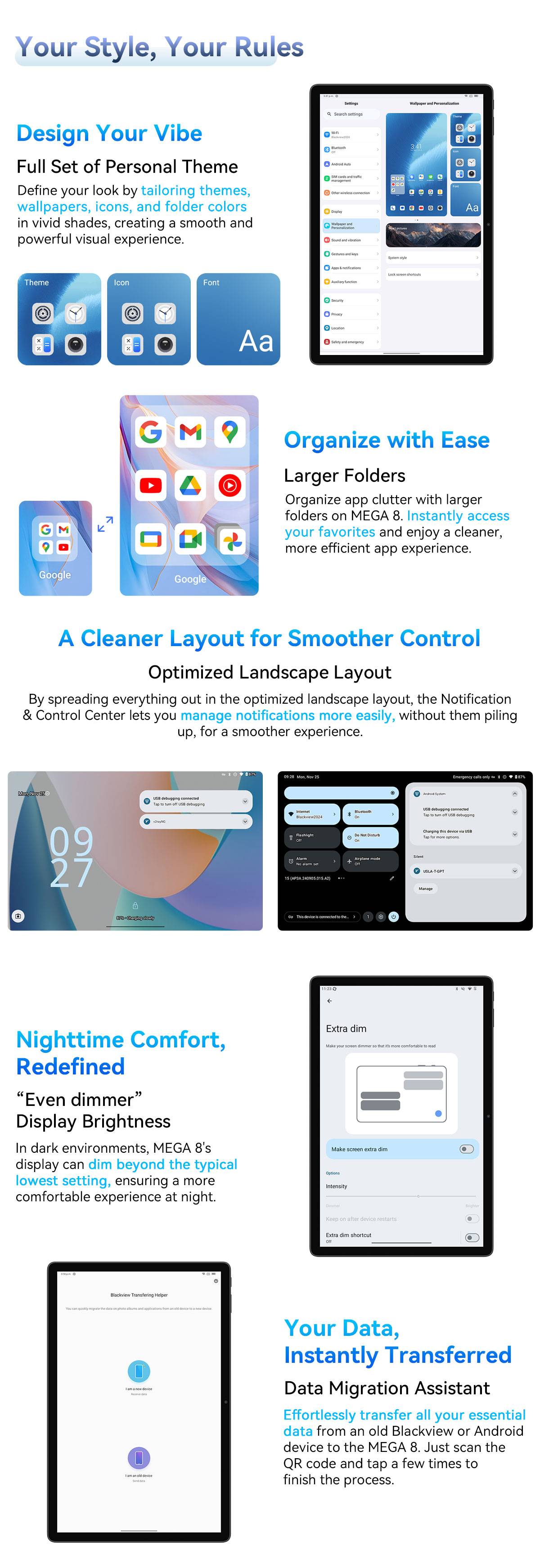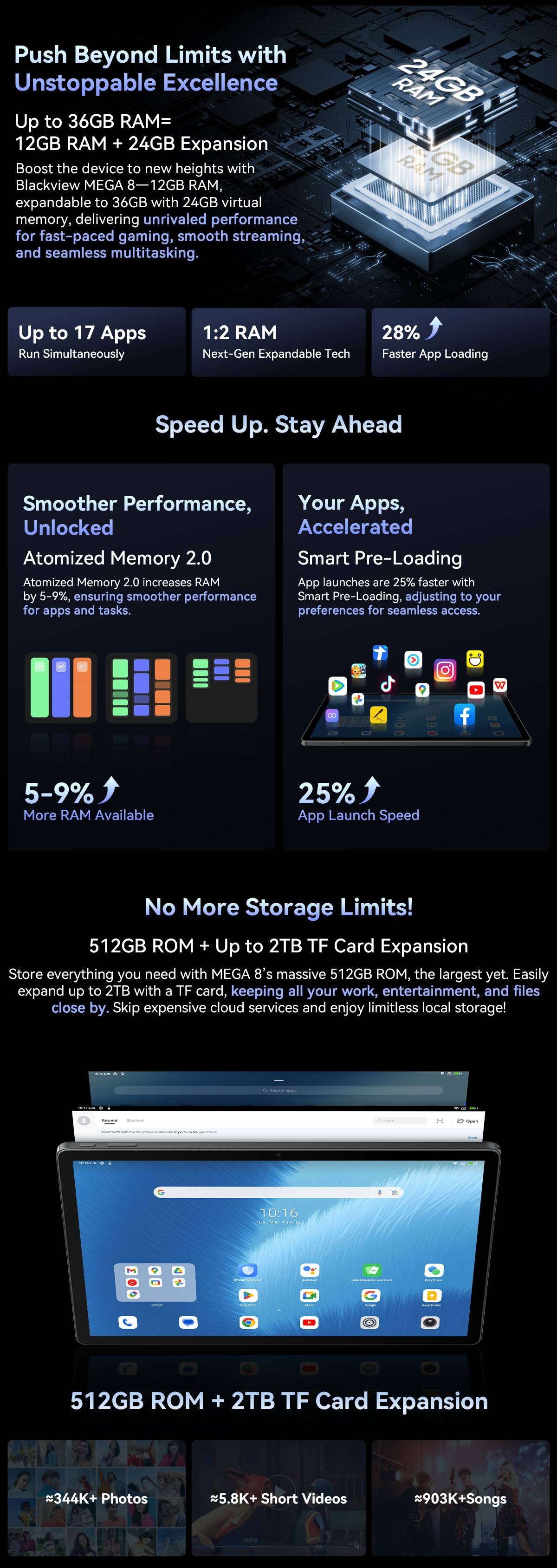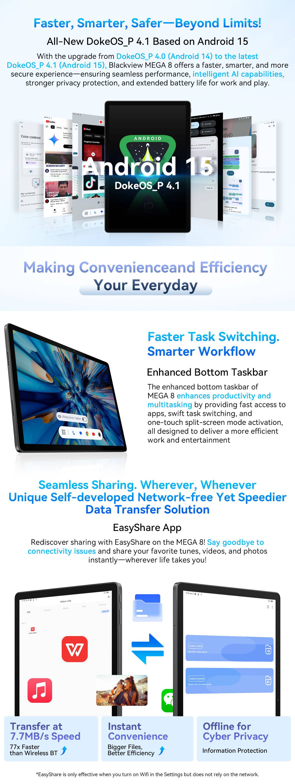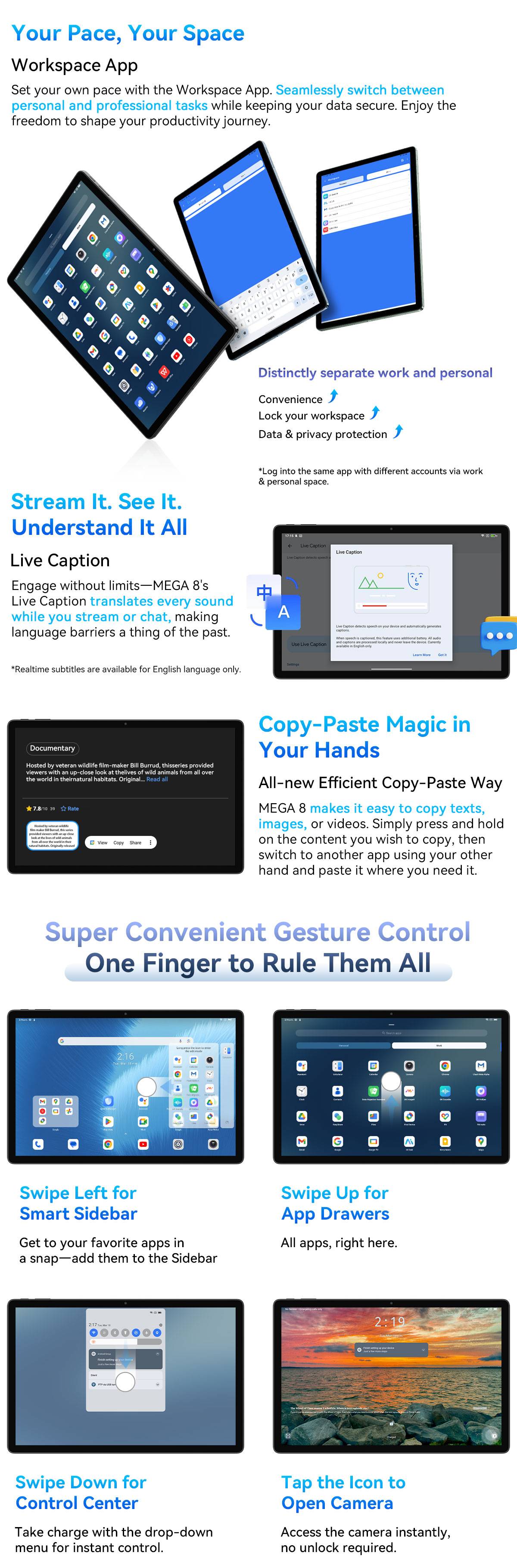 Blackview MEGA 8 4G 13-inch Unisoc T620 Octa-core 12GB+256/512GB 11000mAh Netflix HD Support Android Tablet PC