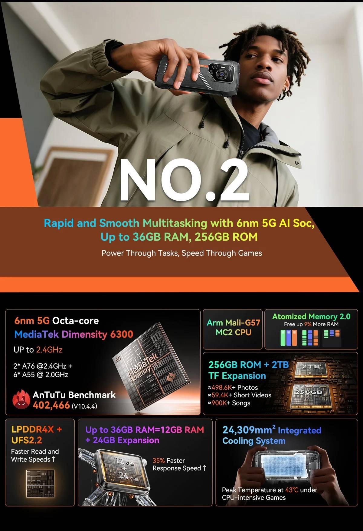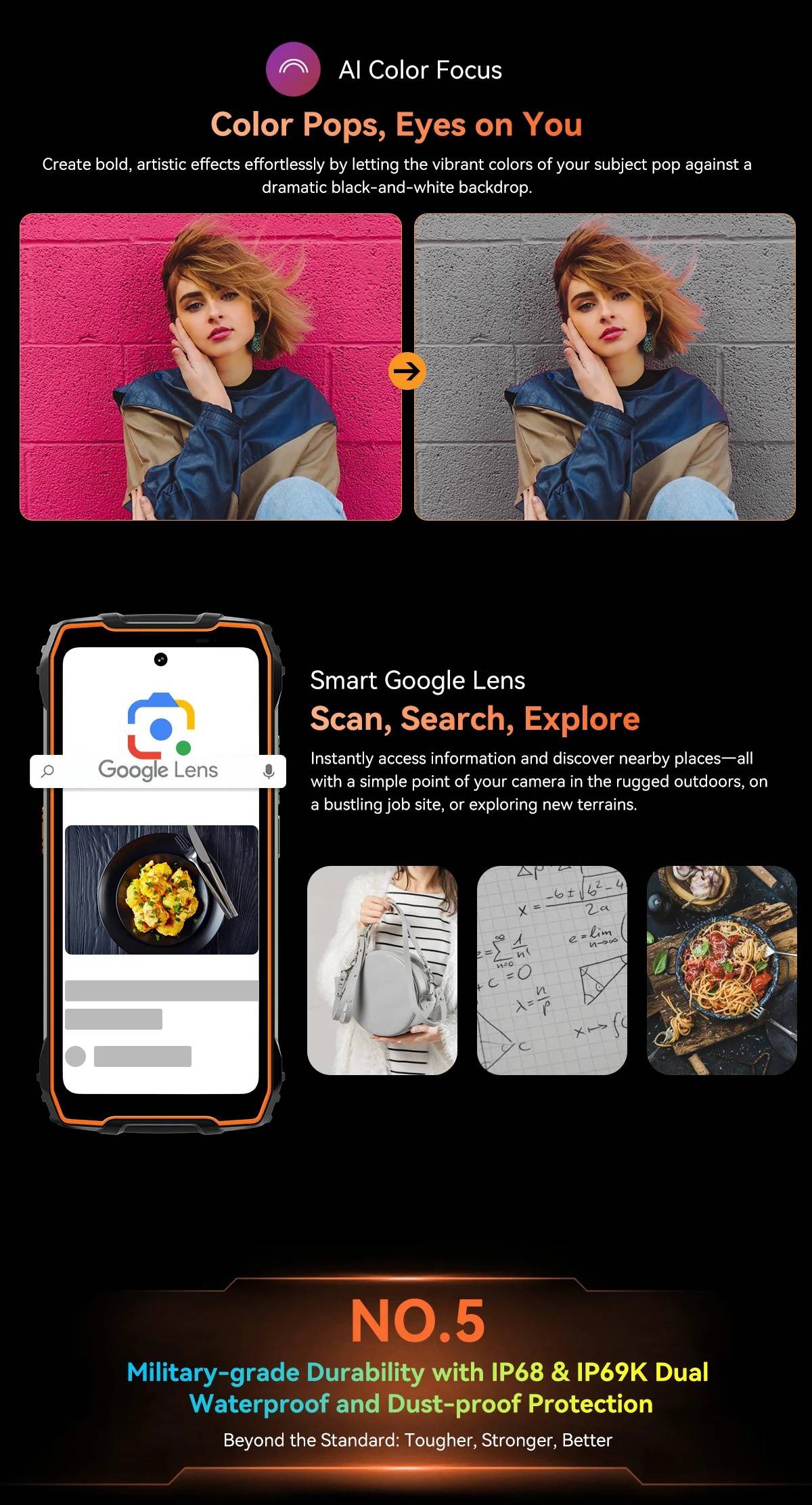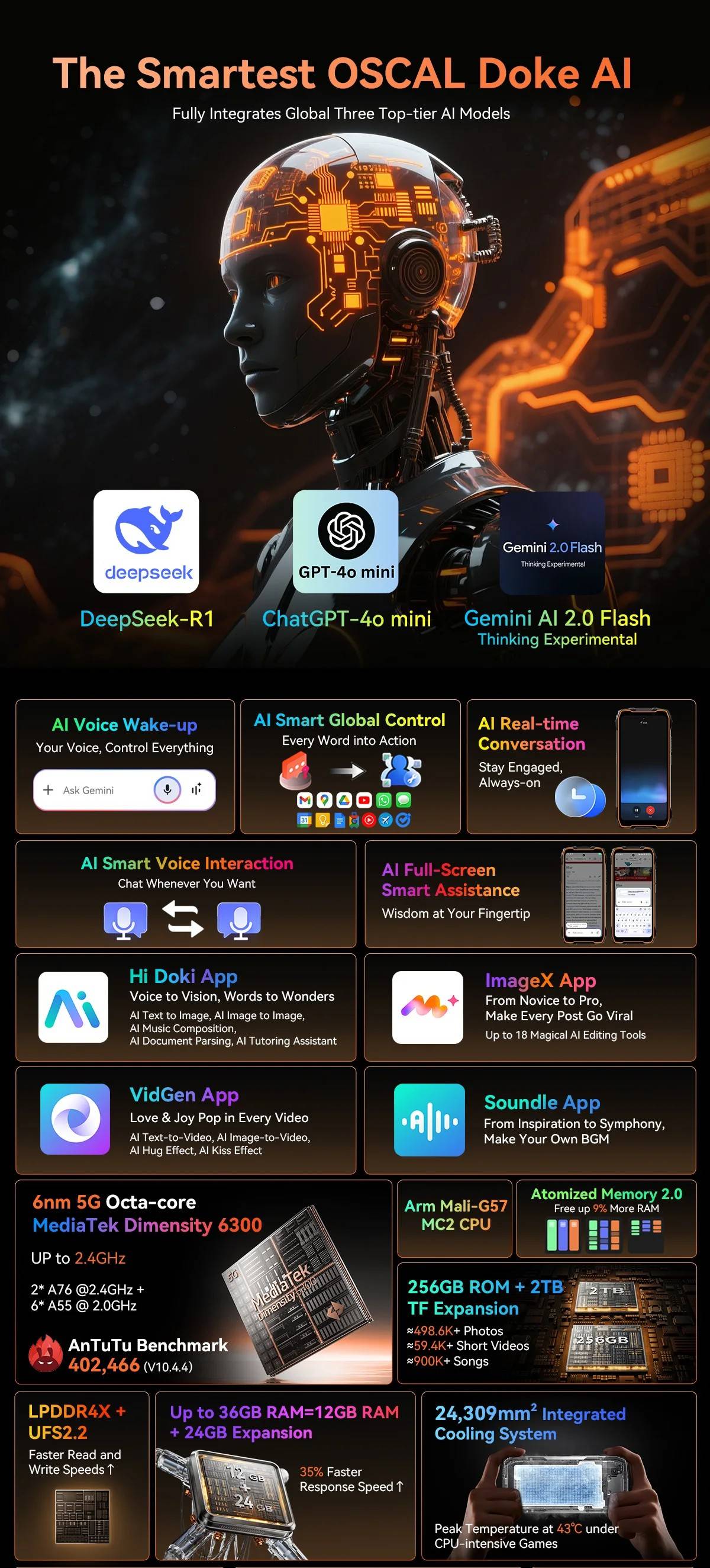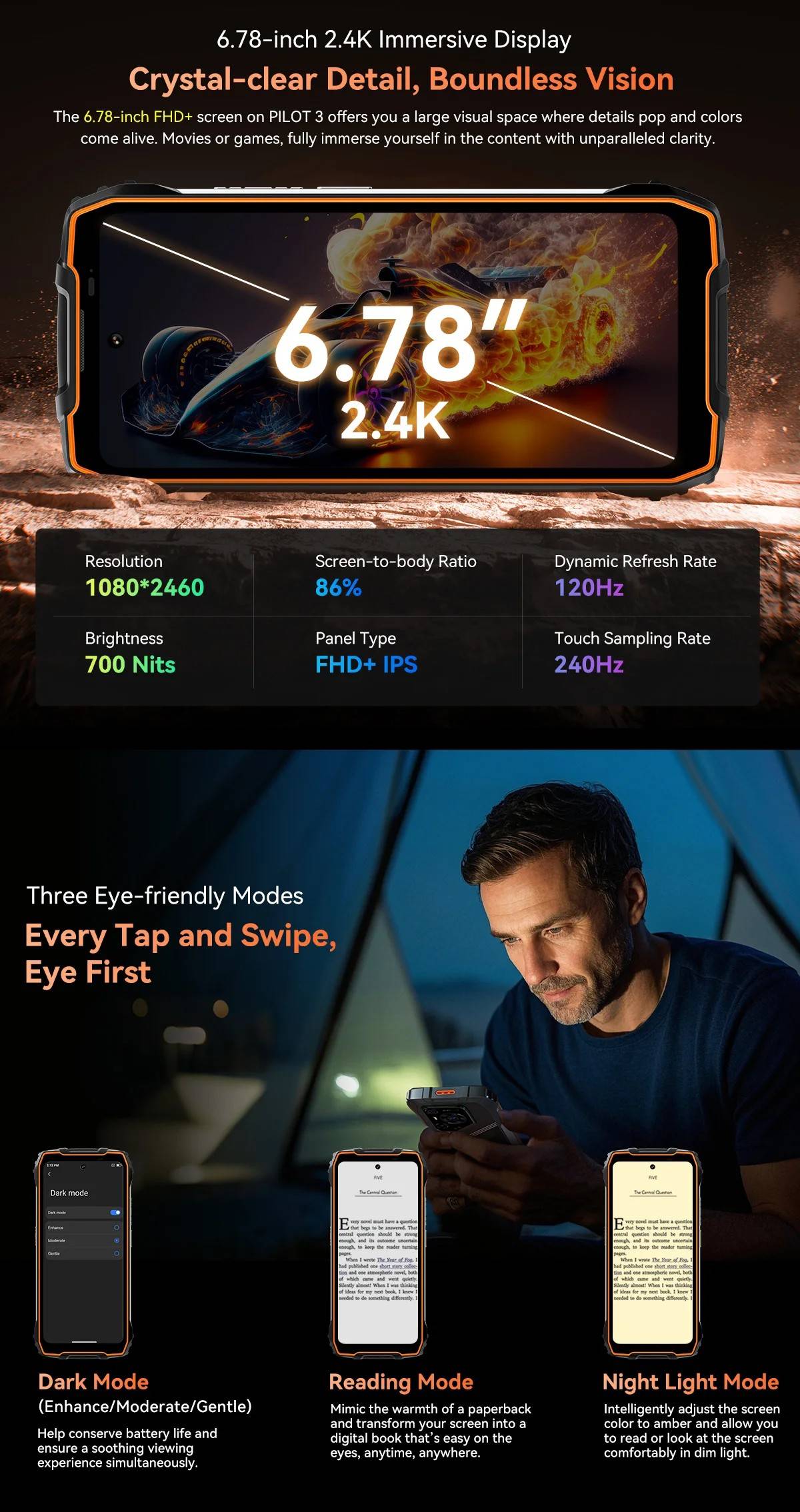 Blackview OSCAL PILOT 3 5G AI Rugged Smartphone MTK 6300, 6.78" 2.4K Display 120Hz, 12GB 256GB, 7500Amh Phones