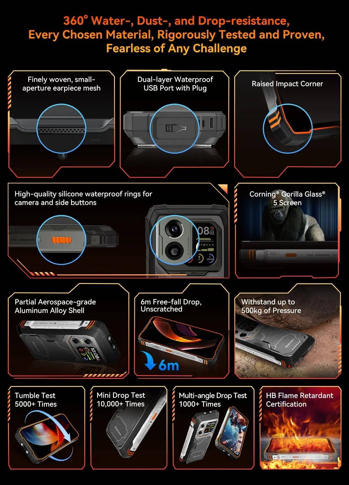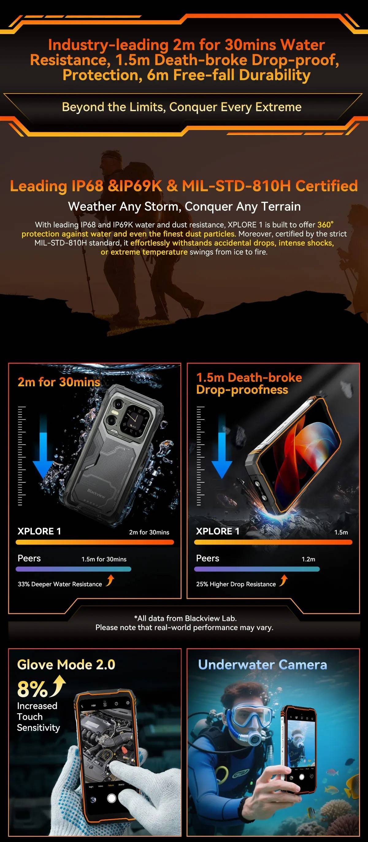 Blackview XPLORE 1 Rugged Smartphone, 5G Waterproof Outdoor Smartphone Android 15, 6.78'' 2.4K Display, 256GB/512GB, 20000mAh
