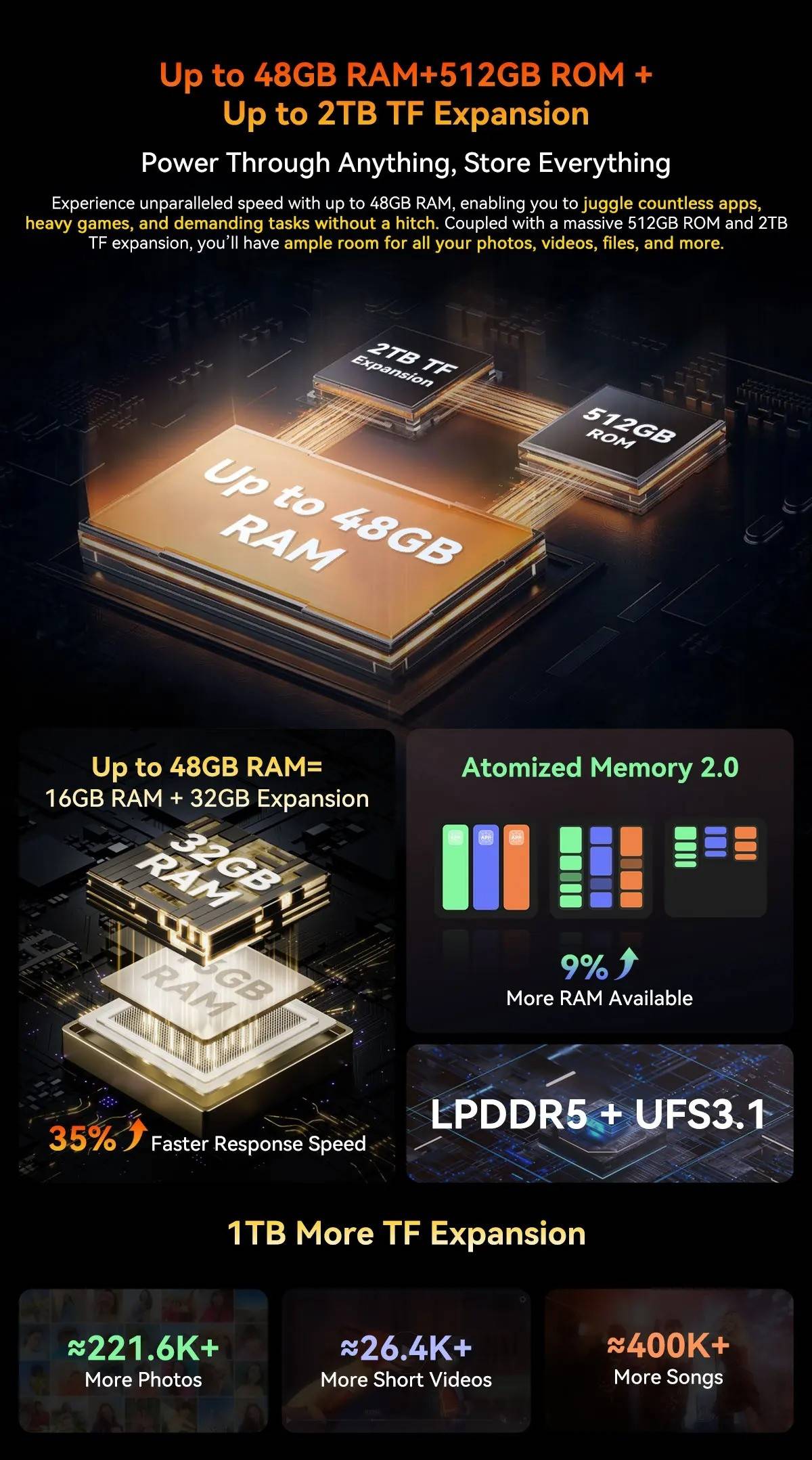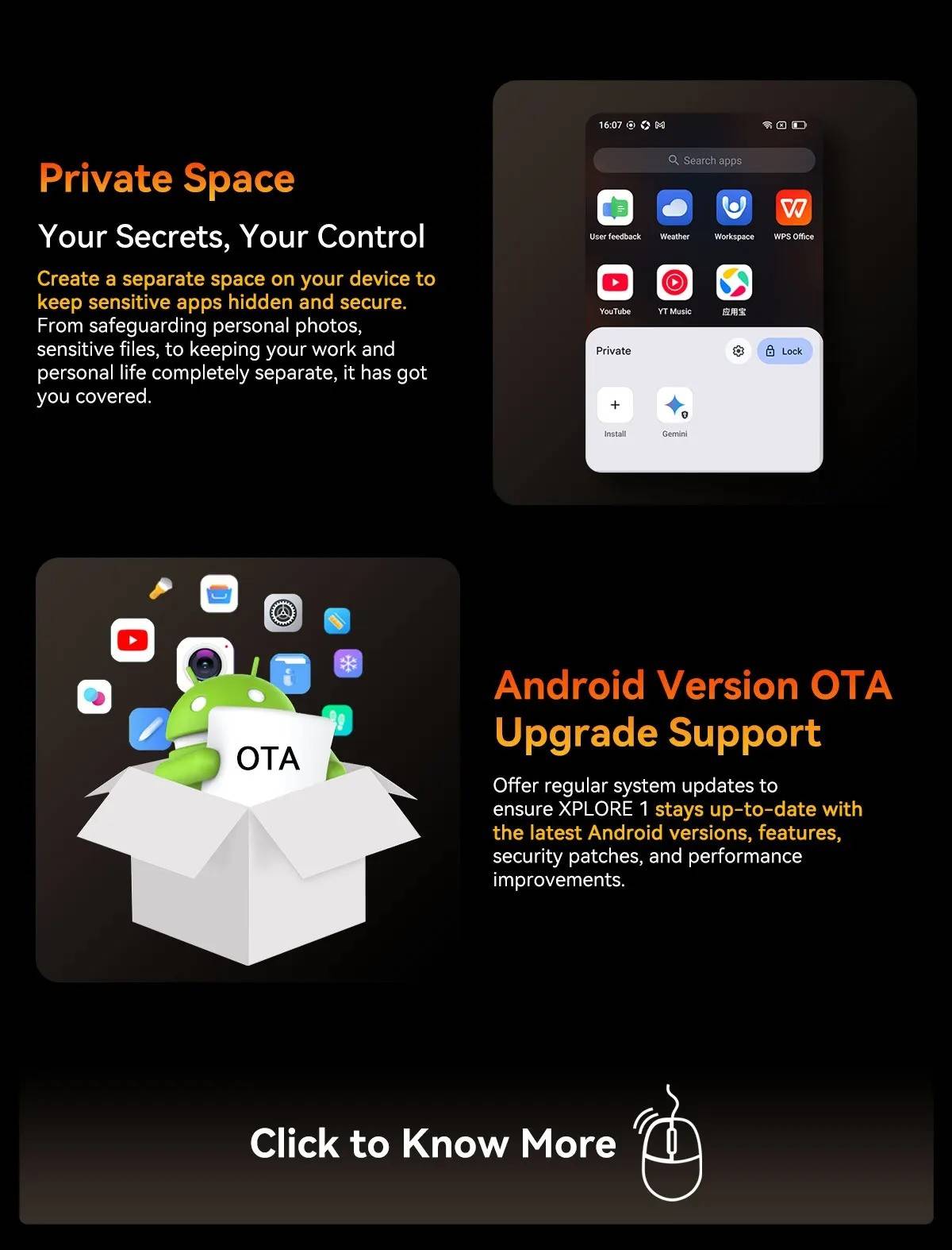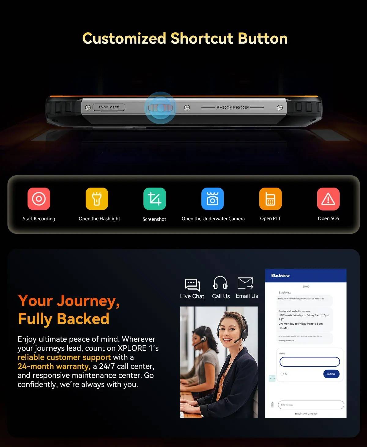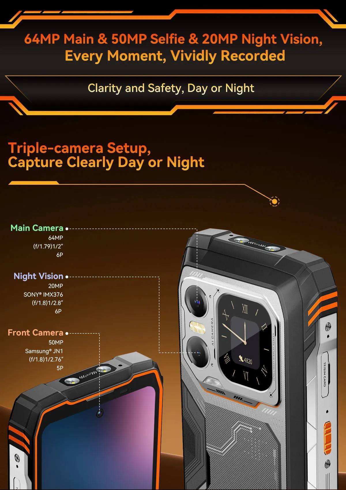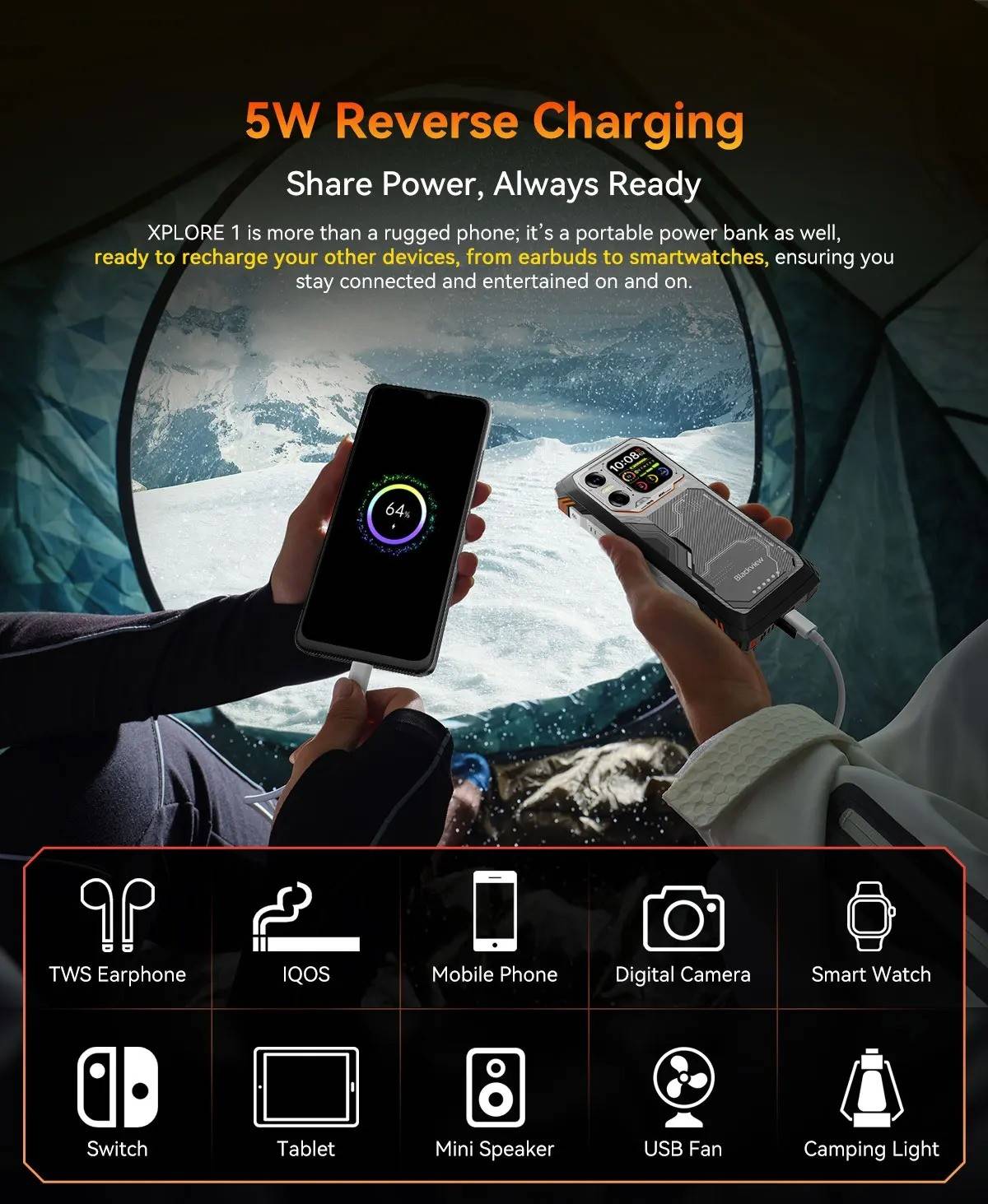Model :Blackview XPLORE 1CPU :Octa-core 5G MediaTek Dimensity 7050, 6nm, Up to 2.4GHzDimension :184*83*29.5mmNet Weight :638gOS : Android 15.0Screen : 6.78-inch 2.4K FHD+IPS, 1080*2460 Resolution,Corning® Gorilla" Glass 5,120Hz Refresh Rate,Secondary Screen: 2.01-inch, 240*296 ResolutionRAM&ROM :12GB RAM & 256GBROM,LPDDR5+UFS3.1 ; 16GB RAM & 512GB ROM,LPDDR5+UFS3.1TF Expansion :Up to 2TB ExpansionRear Camera :64MP Main+20MP Night VisionFront Camera : 50MP (Samsung* ISOCELL JN1)Battery : 20000mAh Battery; 55W Fast ChargingCard Slot : 2* Nano SIM card/1*SIM+1*TF CardRugged Rating : IP68 &IP69K& MIL-STD-810HNavigation support : GPS/GLONASS/BeiDou/GalileoOther Features : OTG, FM,Fingerprint,NFC,AIWi-Fi&Bluetooth : IEEE802.11a/b/g/n/ac/ax(2.4GHz/5GHz);Bluetooth 5.2