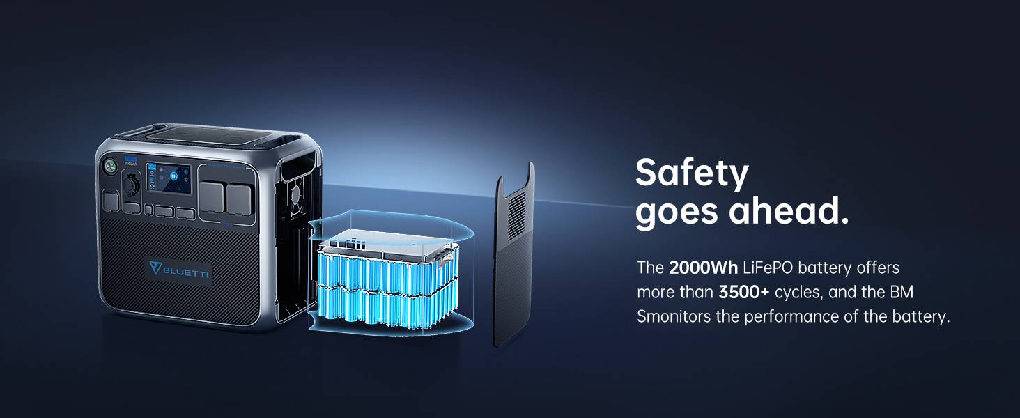 BLUETTI Solar Generator - 2000Wh LiFePO4 Battery Backup with 2 2000W AC Outlets (4800W Peak) - Portable Power Station for Outdoor Camping, RV Travel, Home Use (Solar Panel Optional)