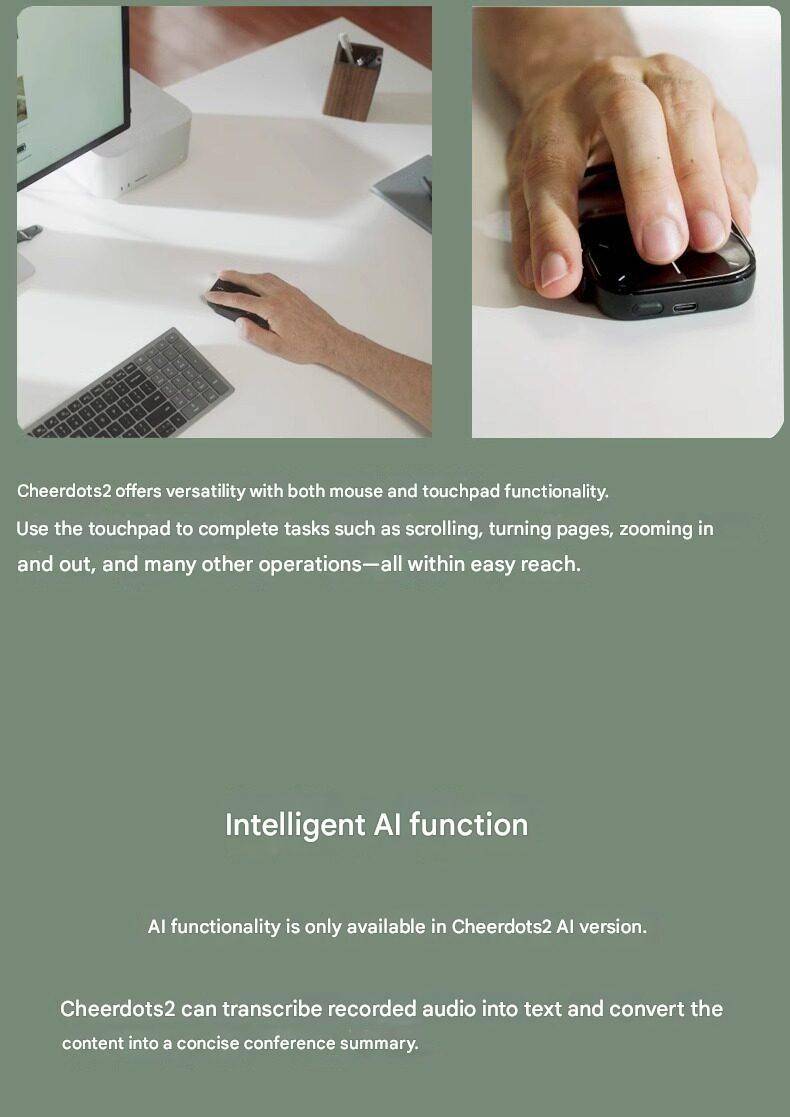 Cheerdots 2 Detachable Air Mouse Touchpad Pocket AI Recording ChatGPT Silent Wireless Mouse Business Office Mouse Gaming Mouse