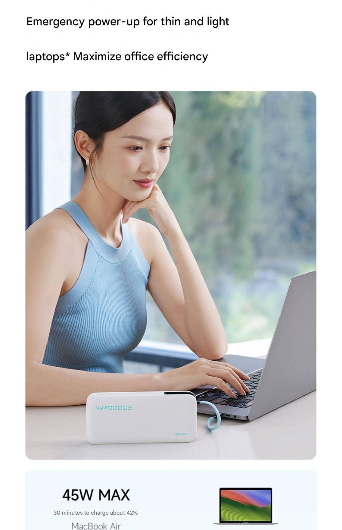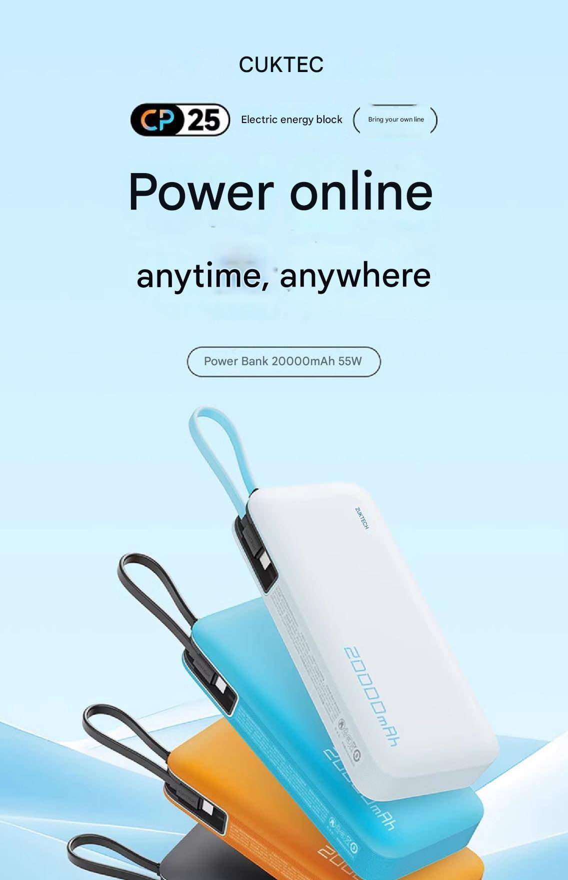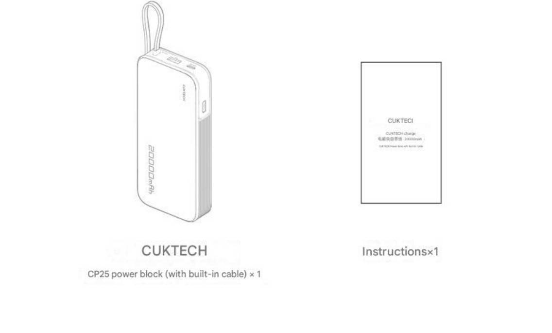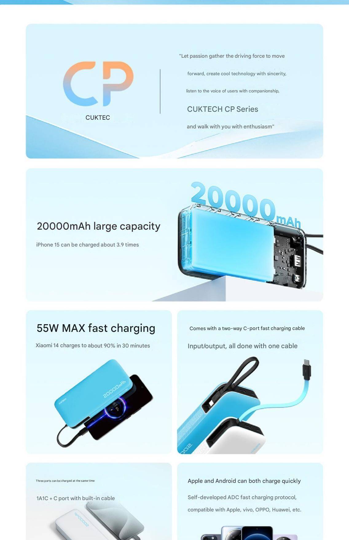 CUKTECH 20000 mAh portable power bank with built-in cable