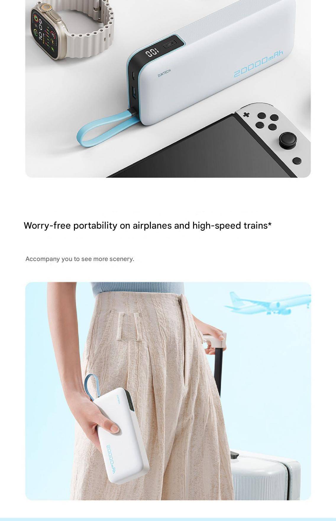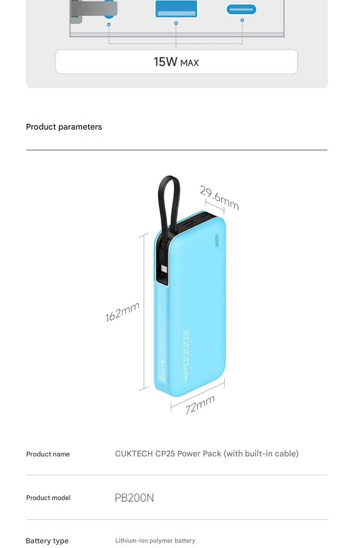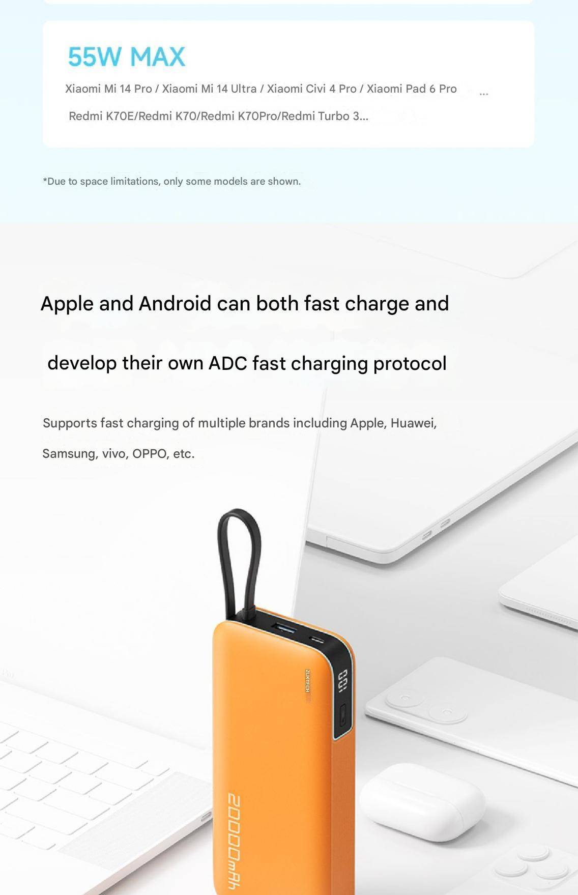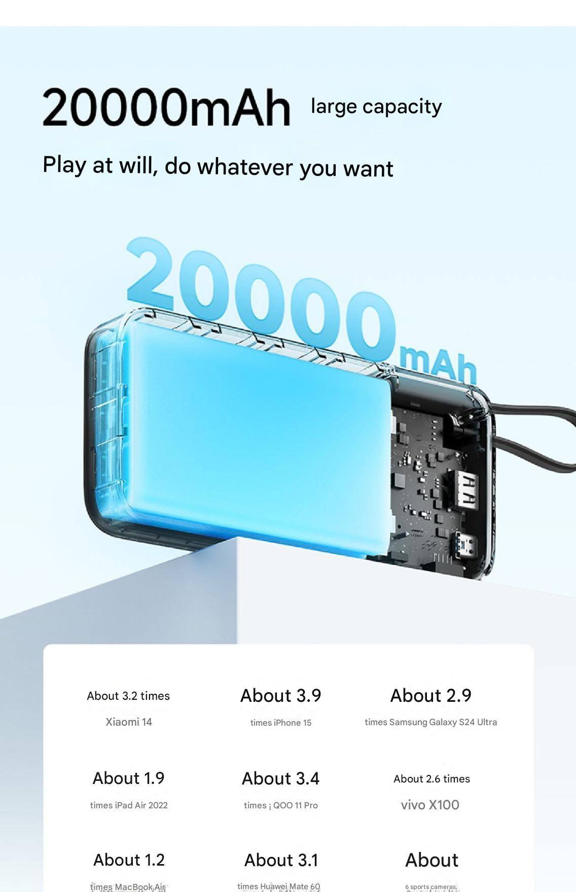 CUKTECH 20000 mAh portable power bank with built-in cable