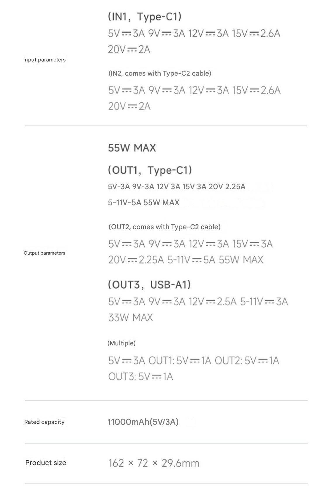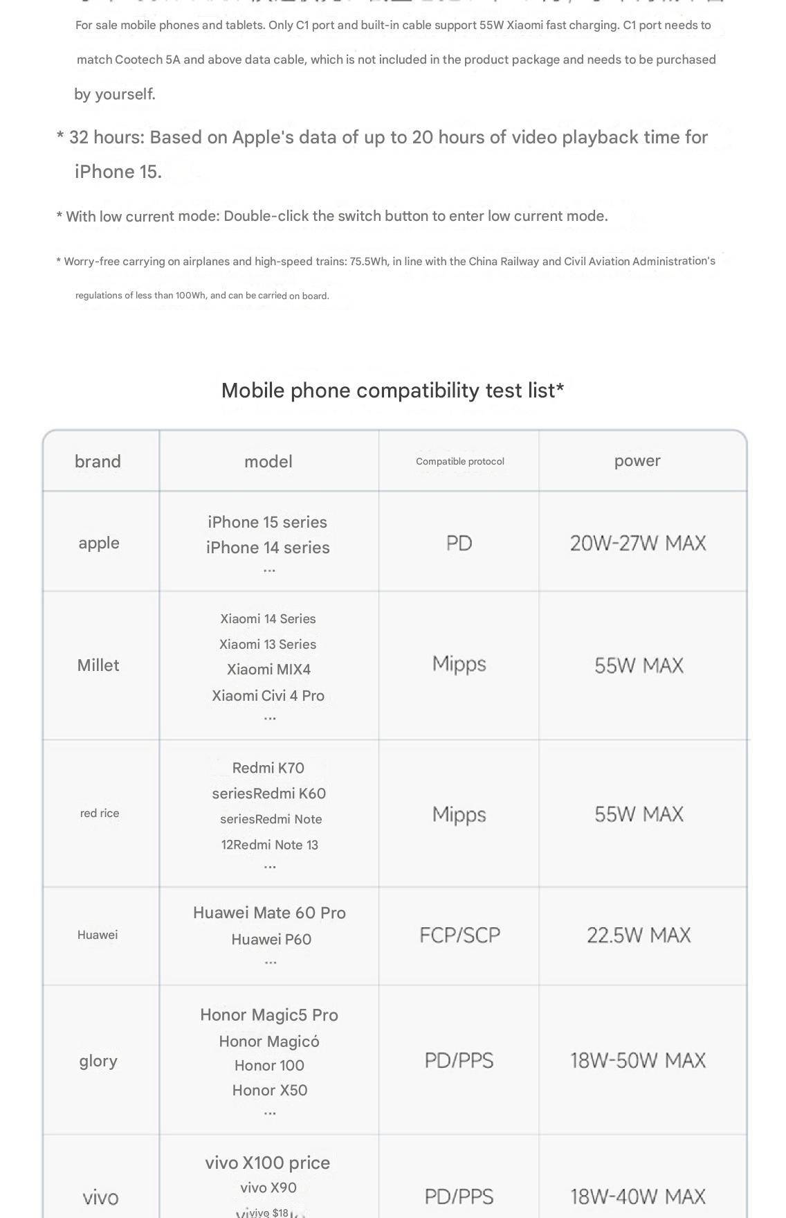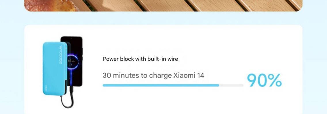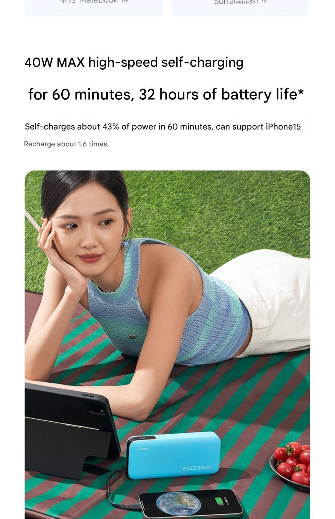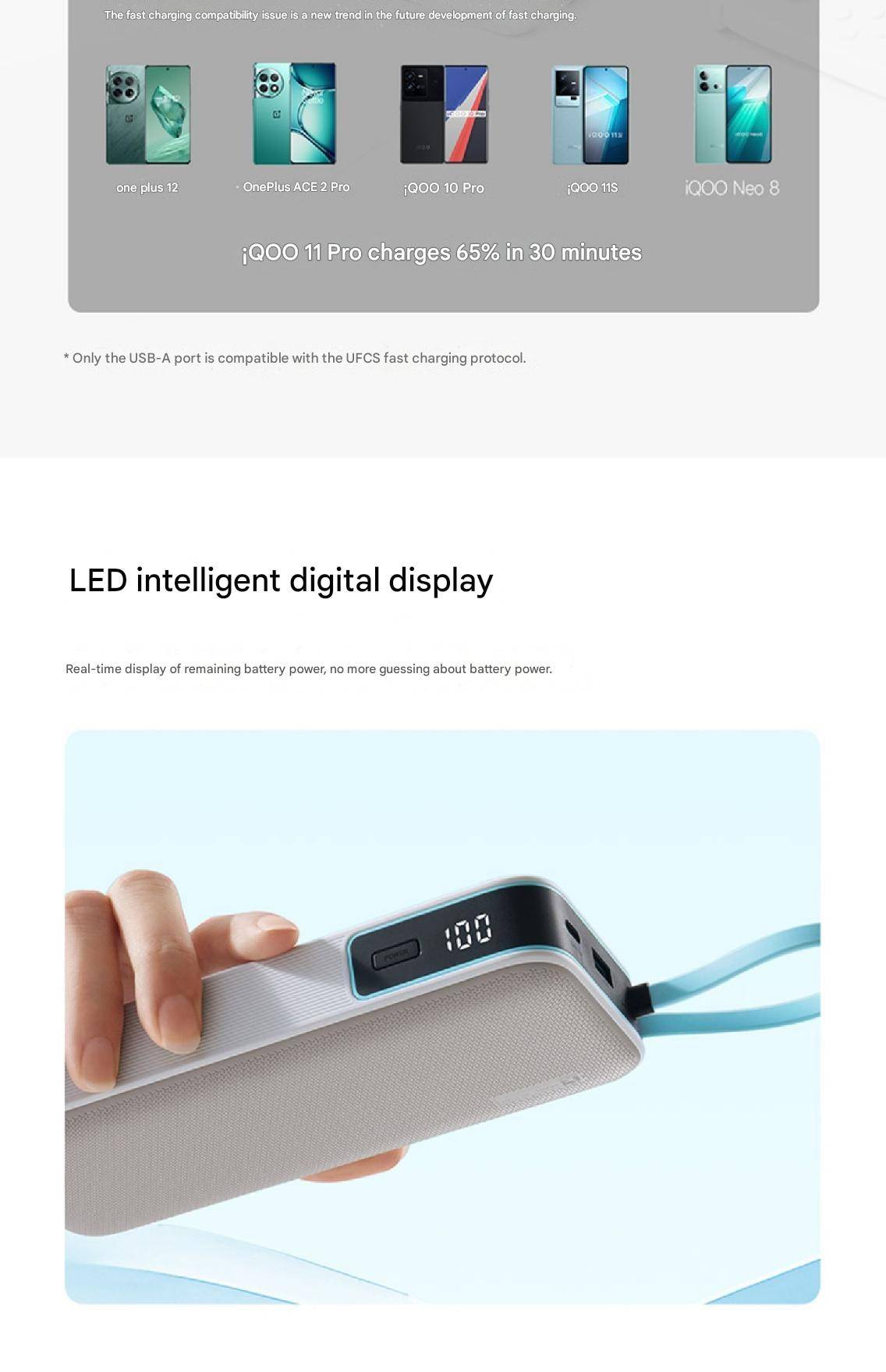 CUKTECH 20000 mAh portable power bank with built-in cable