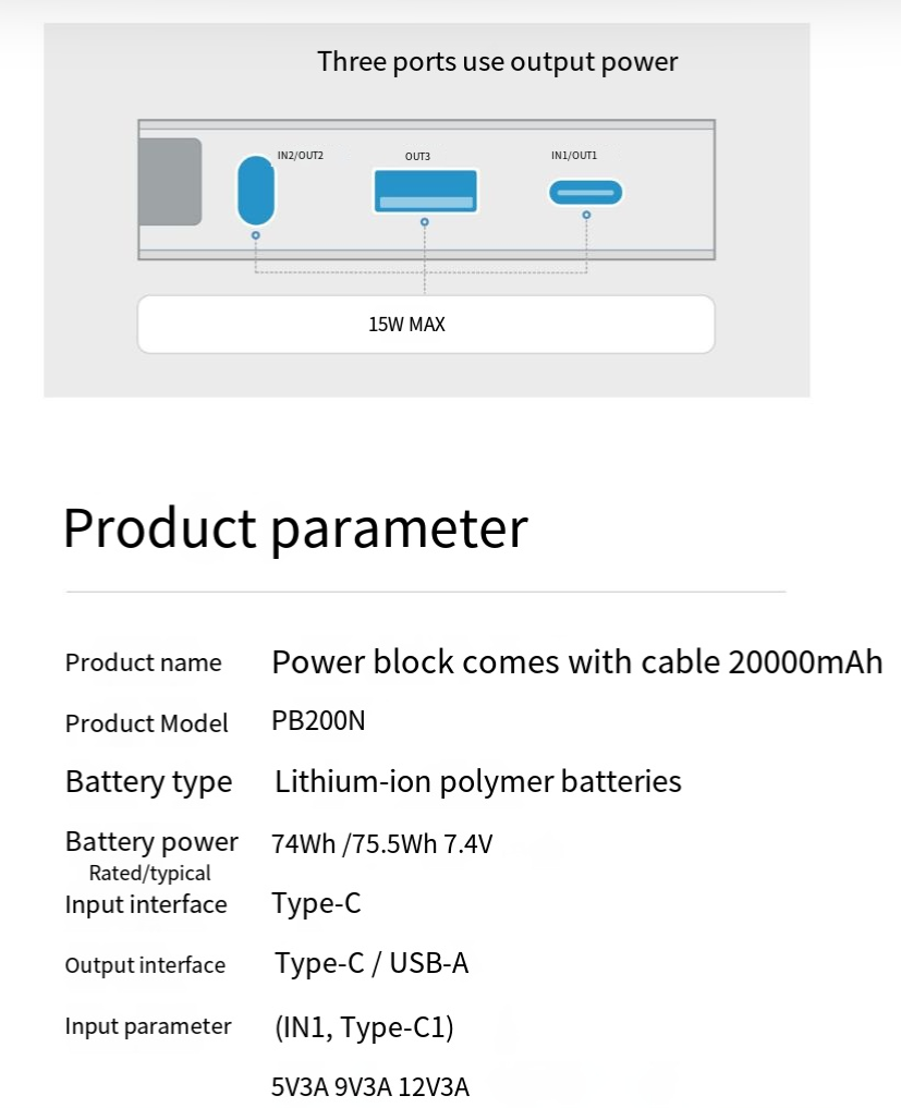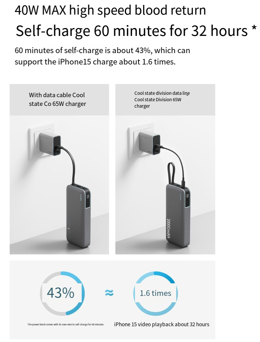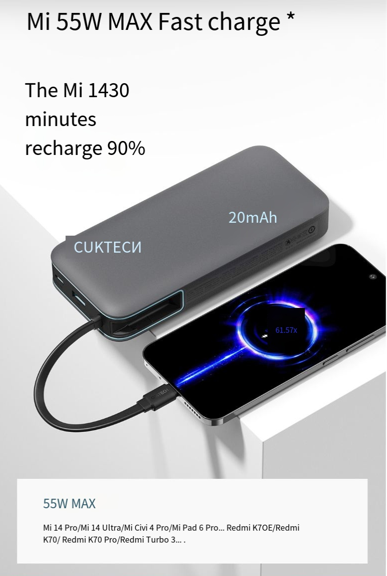 CUKTECH Power Block with built-in cable 20000mAh PB200N