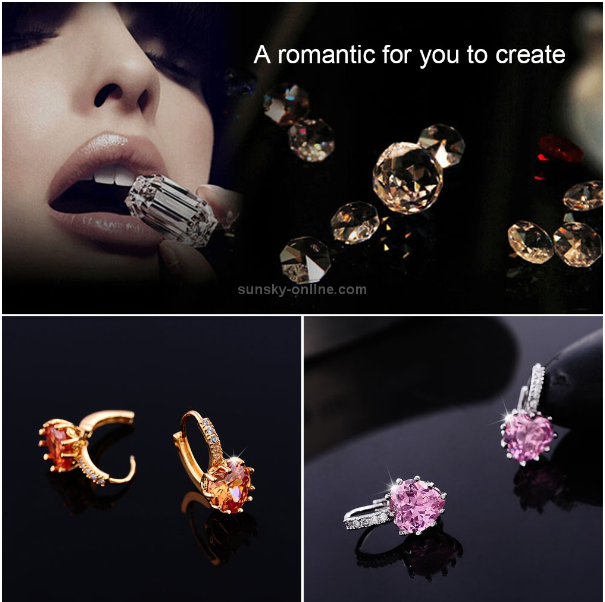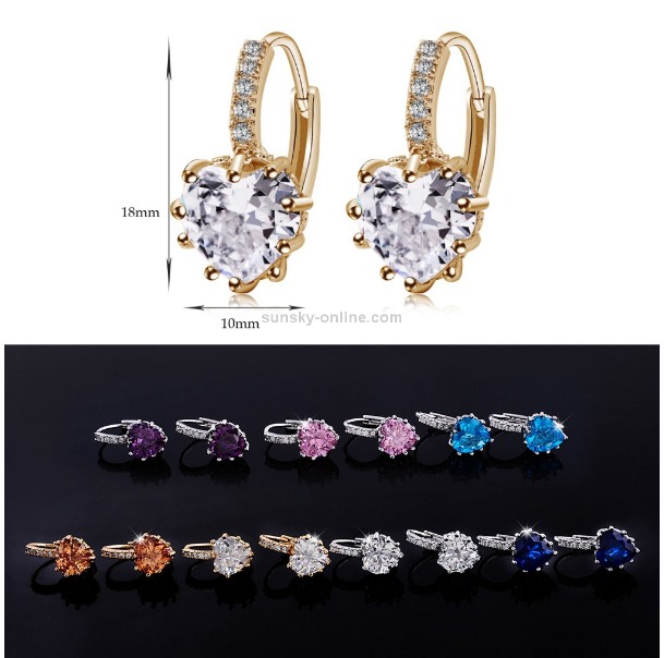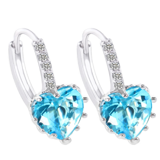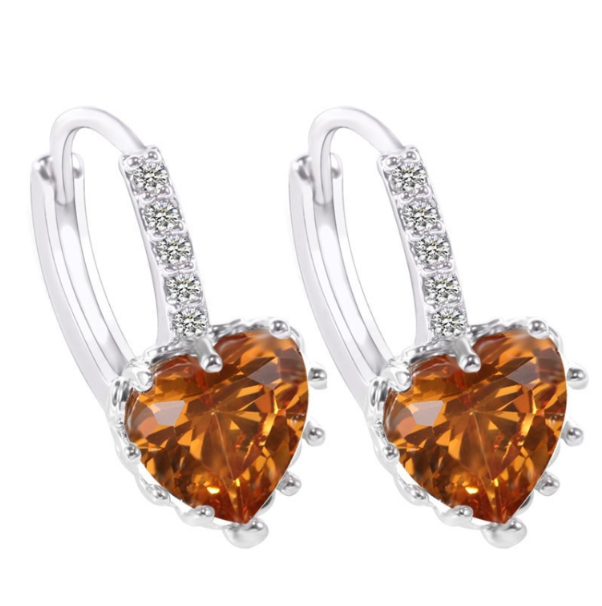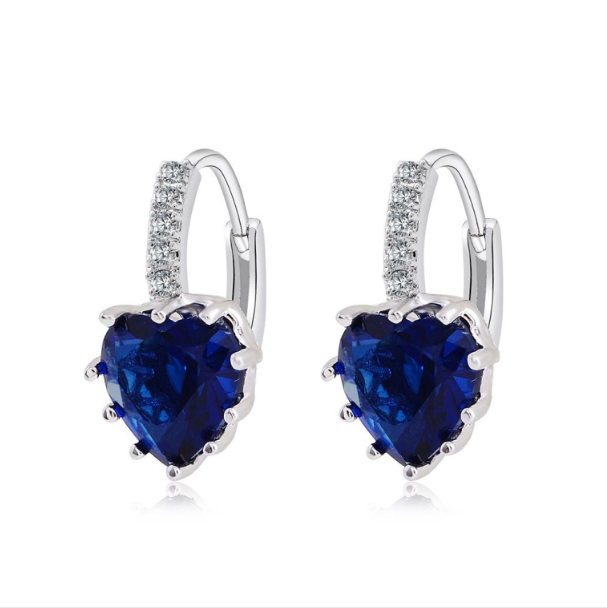 Cute Heart Real 925 Sterling Silver Cubic Zirconia Stone Earrings