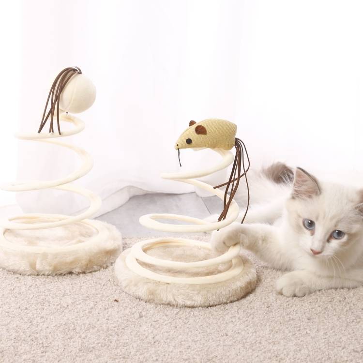 Cute Pet Cats Toys Supplies Spiral Wire Spring Fabric Round Cats Scratching Toys(Hemp Ball)