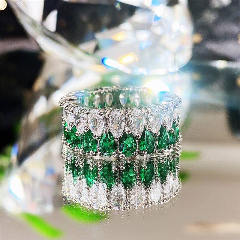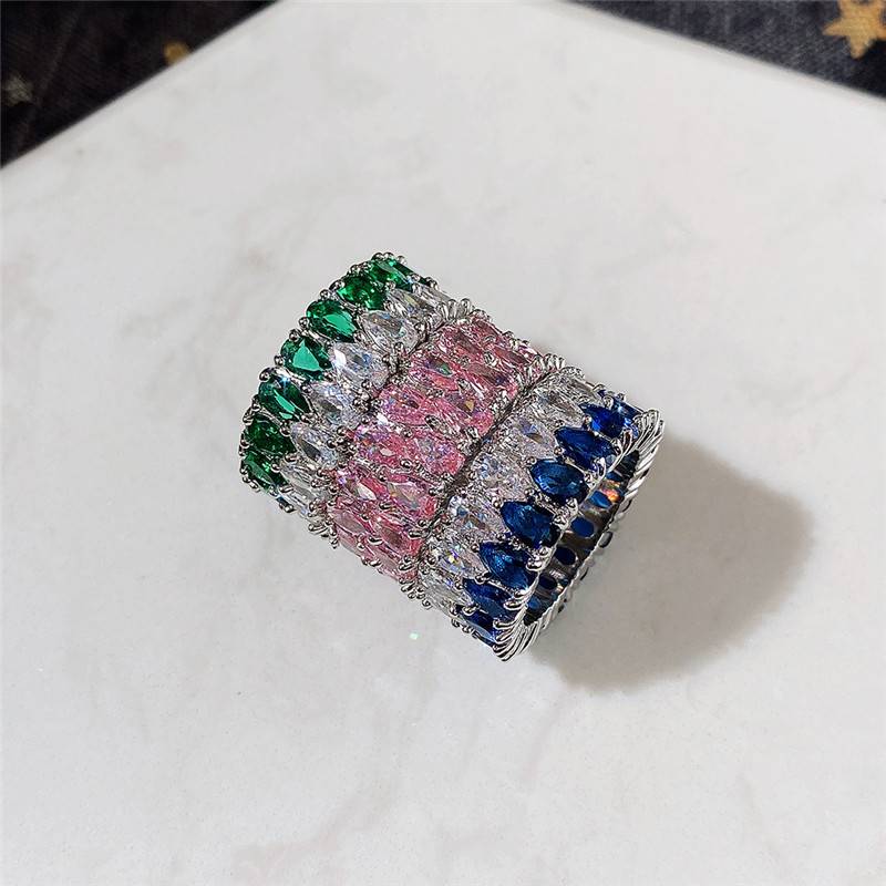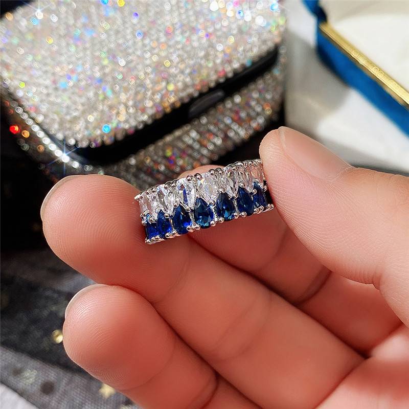 Deluxe double draining zirconium ring full of diamond couples ring