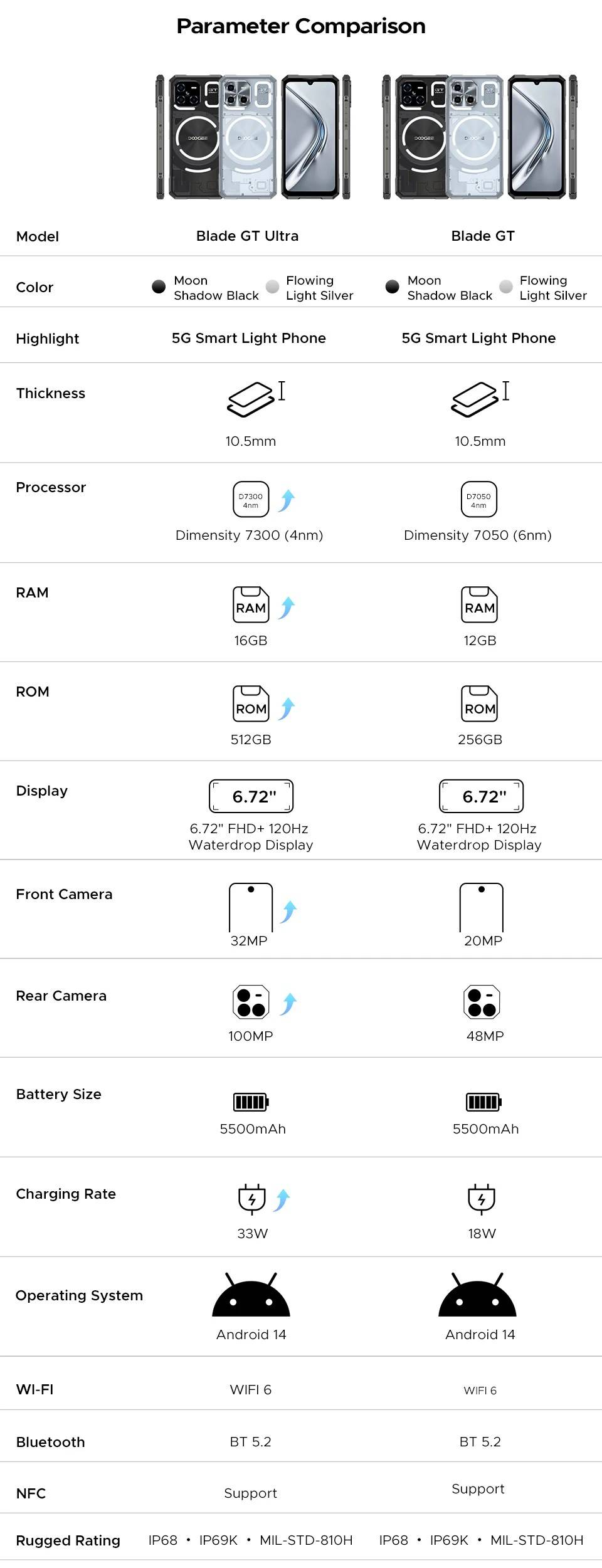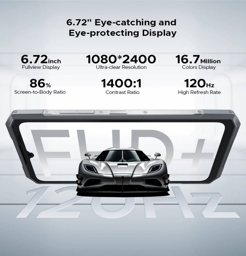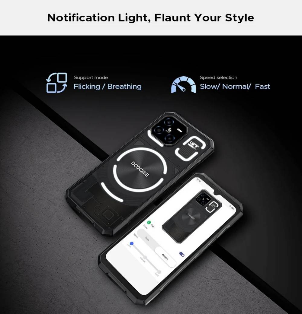 DOOGEE Blade GT Ultra 5G Rugged Phone 16GB 512GB 6.72” FHD+ 120Hz IPS Dimensity 7300 LED light effect 100MP AI Main Camera
