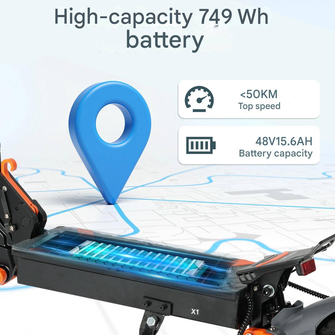 [EU Direct] MAXTURN X1 Electric Scooter 1000W Motor 48V 15.6Ah Battery | 50KM Range, 25KM/H Speed, 10" Tires
