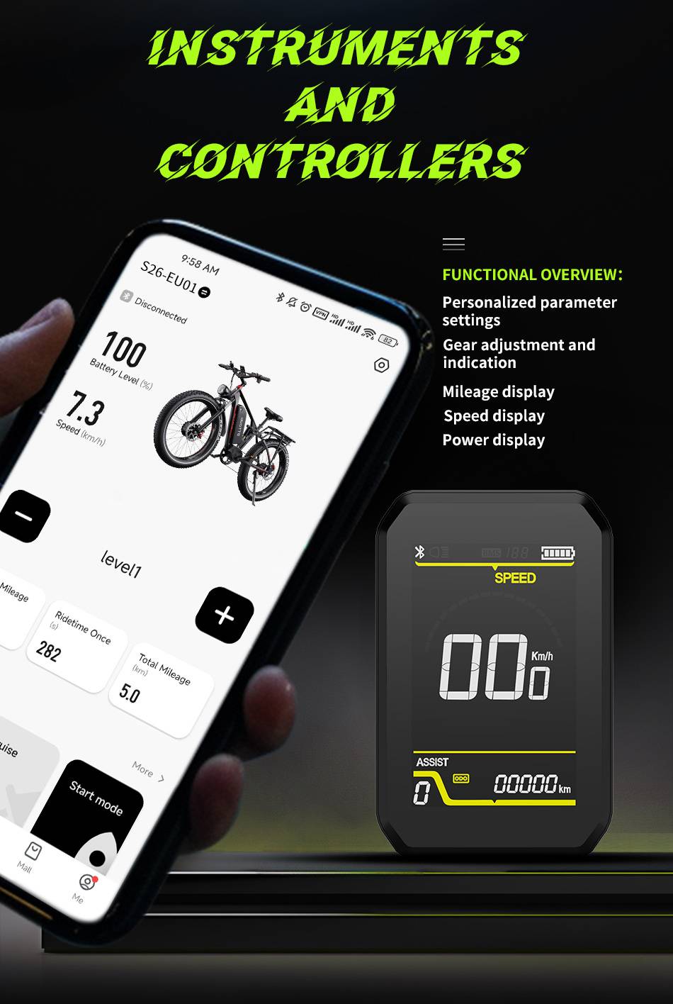 Riding Modes:Pure Electric Mode、Pedal Assist Mode (Speed Sensor)、Manual Riding Mode