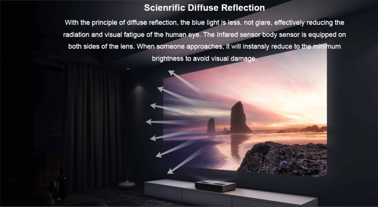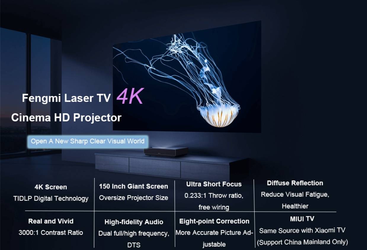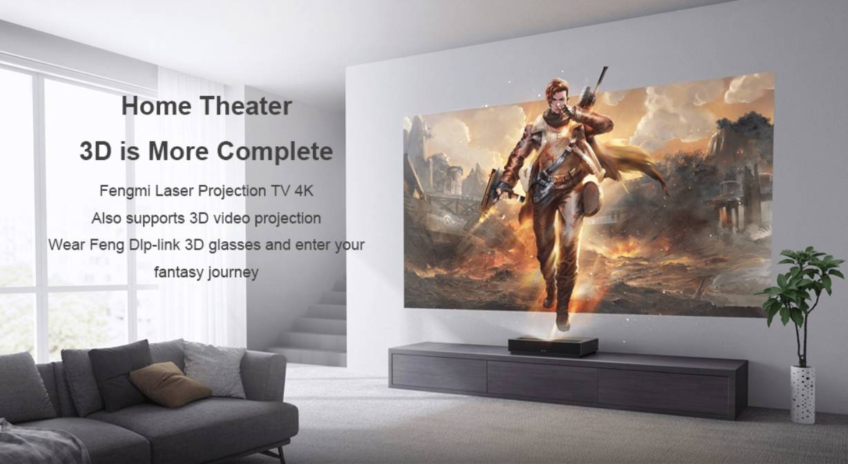 Fengmi Formovie 4K Cinema Ultra Short Throw Projector 4K UHD 2100ANSI Android TV 9.0 Iaser Projector Google Play Assistant YouTube ALPD3.0 150 inch HDR10 4K Bluetooth4.0 With EU Plug - EU Plug