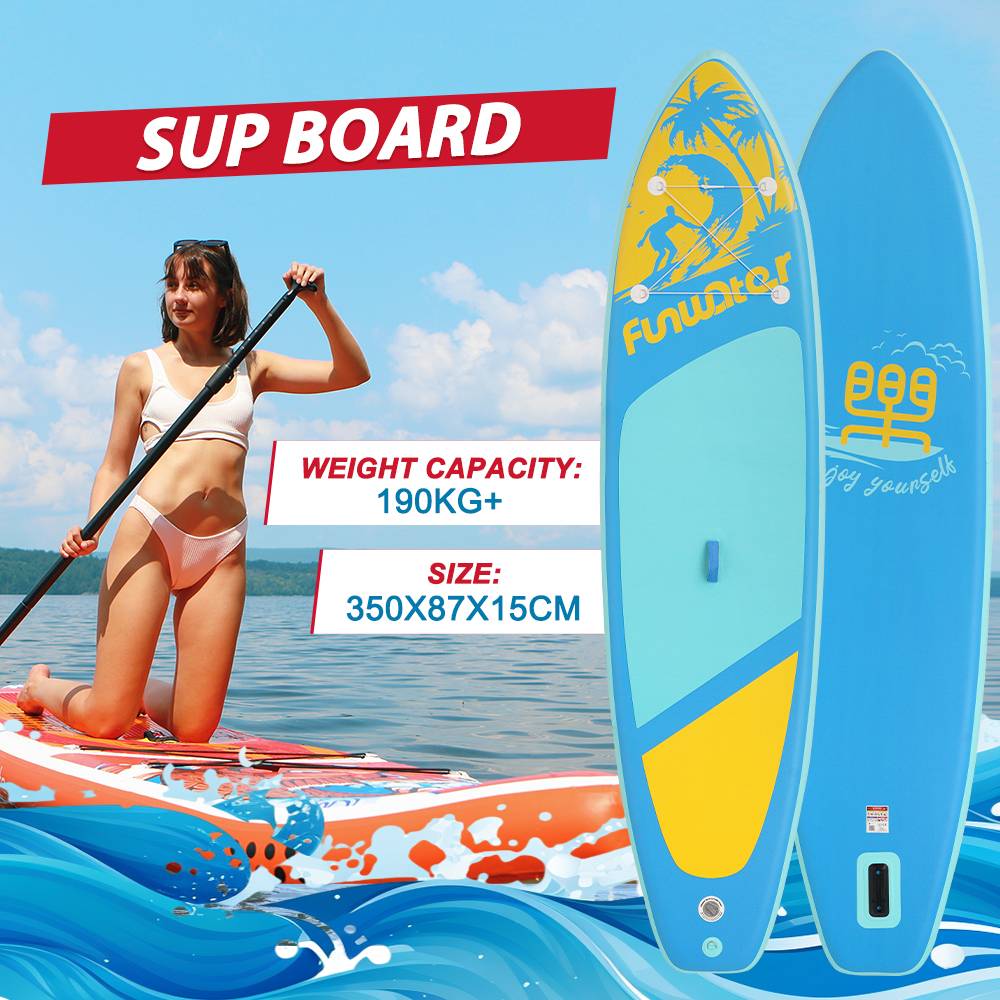 [EU Direct] 350*87*15cm FunWater Inflatable Paddle Board Ultra-Light Surf Sup Board Non-Slip Water Sport Paddling Board with Accessory