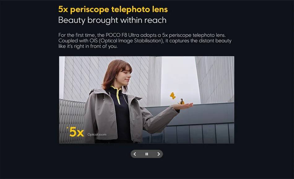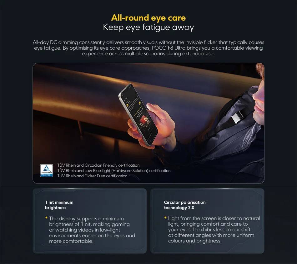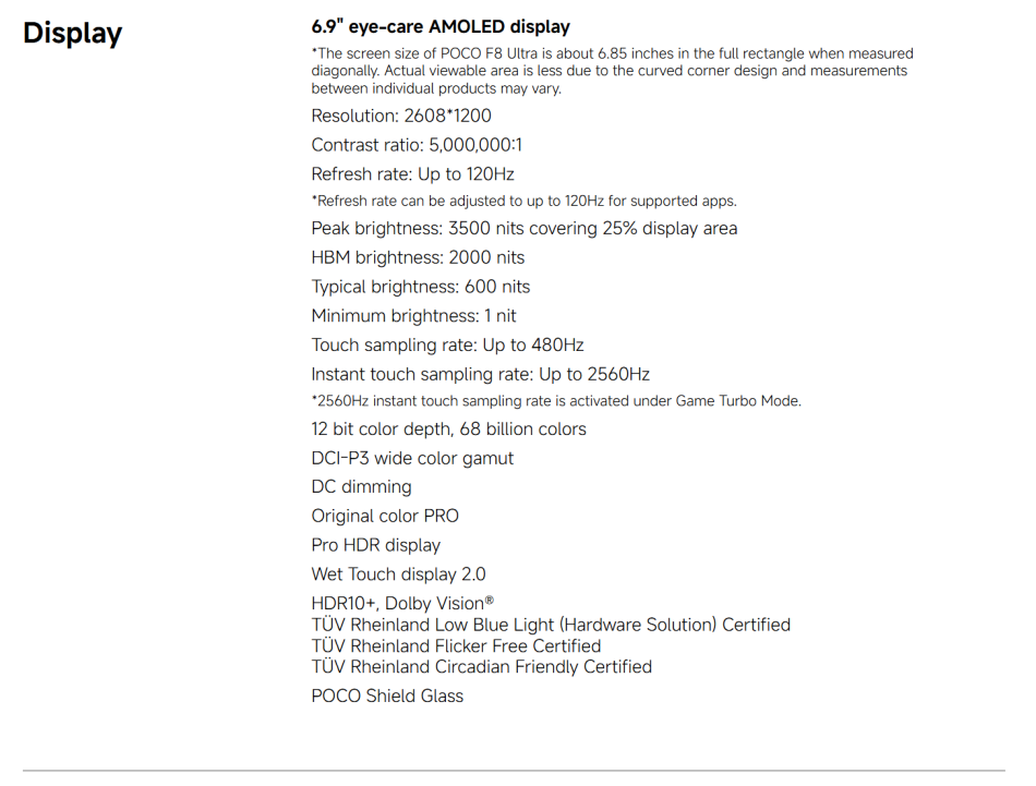 Global Version POCO F8 Ultra CPU -----------Snapdragon® 8 Elite Gen 5 Mobile Platform Screen -------- 6.9" 120Hz ultra-clear AMOLED display