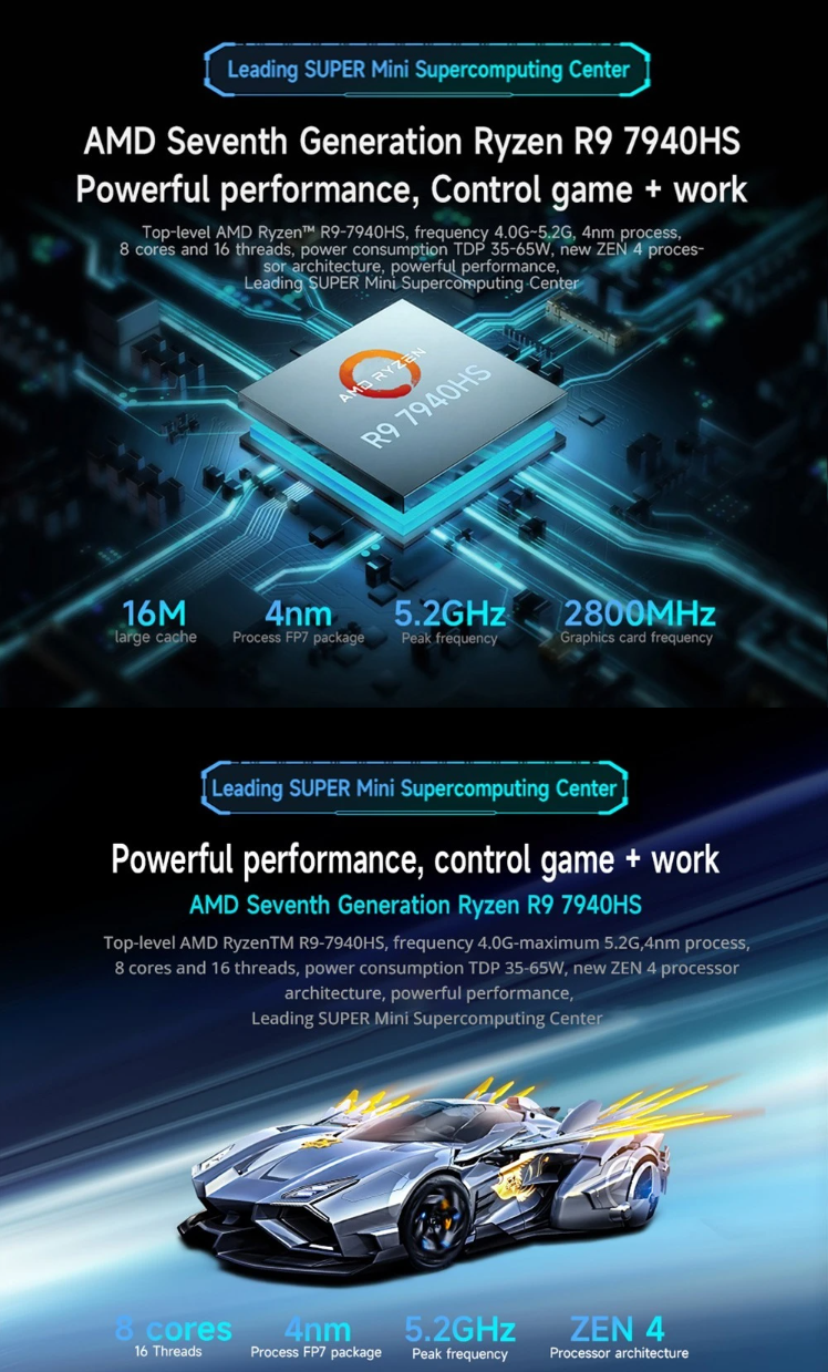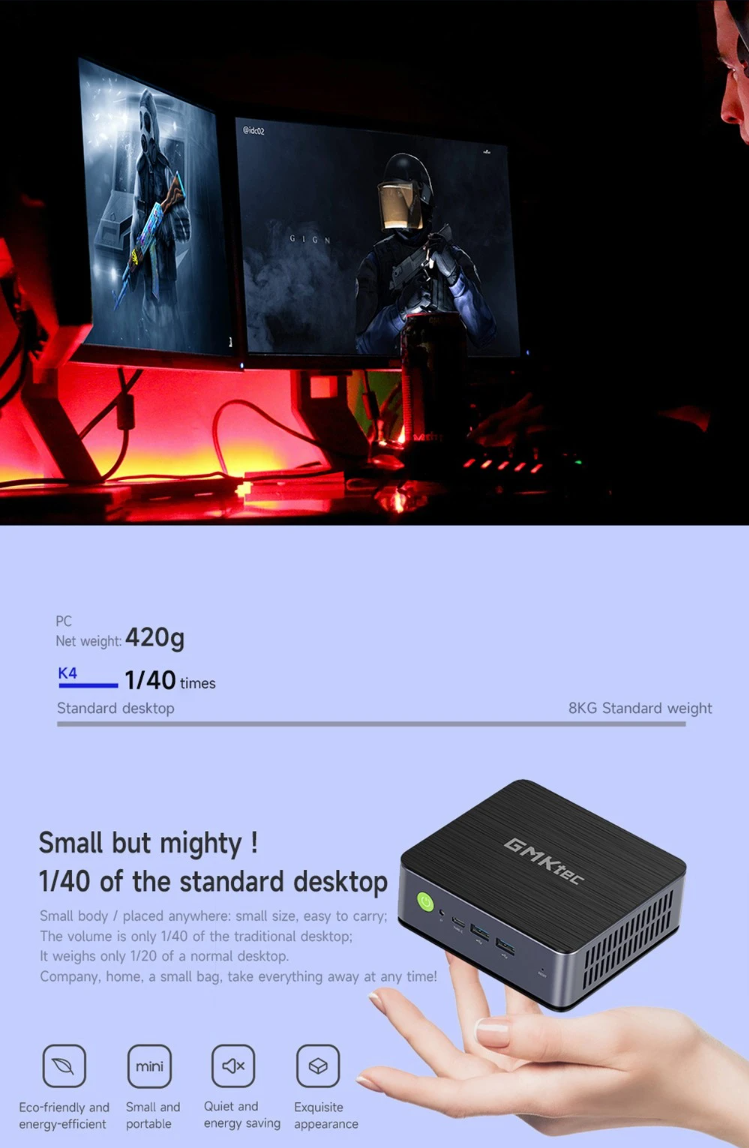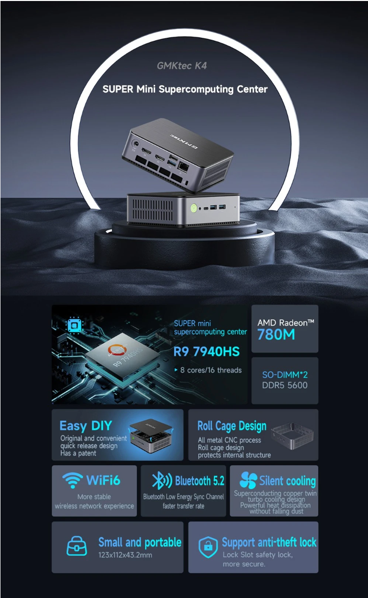 GMK K4 Mini PC AMD Ryzen 9 7940HS, 32GB DDR5 1TB SSD, Windows 11 Pro, Windows 11 Pro, WiFi 6, 4K Output