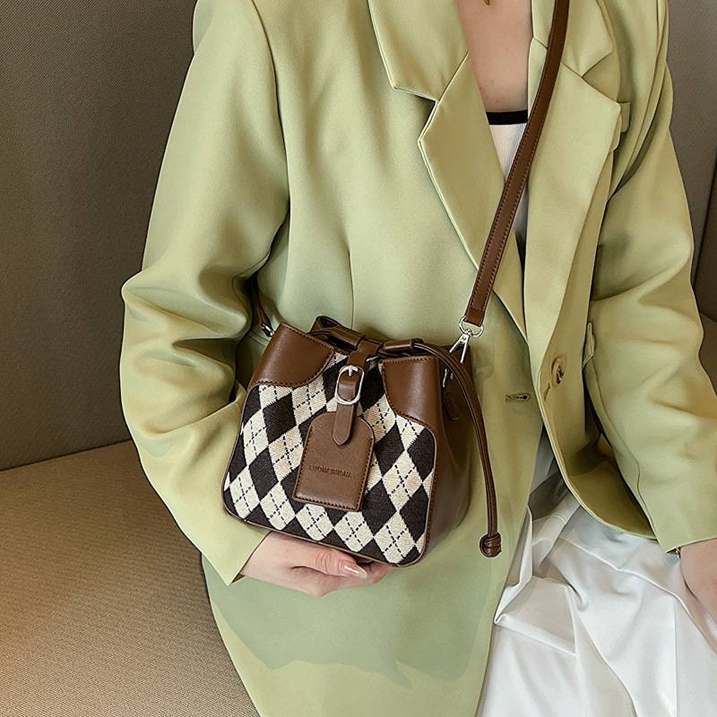 High-end temperament Lingge Korean version of the women's bag 2023 new spring and summer simple Messenger net red retro single shoulder bucket bag