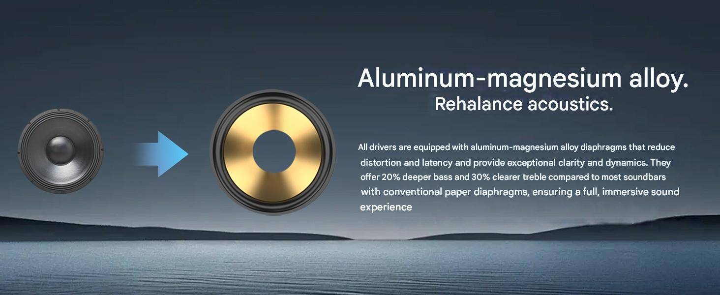 - PREMIUM MATERIALS FOR SUPERIOR SOUND - Hiwill has equipped its speakers with neodymium iron boron magnets to reduce sound distortion and improve the precision of the audio signal. Lightweight aluminum-magnesium alloy membranes increase sensitivity and clarity, minimize distortion and thermal problems, and provide excellent corrosion resistance. Copper rings in each driver optimize frequency response and reduce electromagnetic interference for a fuller sound. In addition, a proprietary catwalk-shaped midrange provides improved dialogue clarity and audio positioning, enabling clear dialogue even in quiet environments.