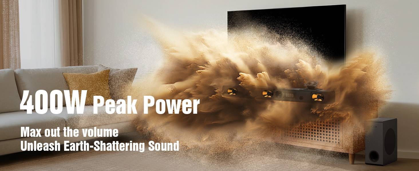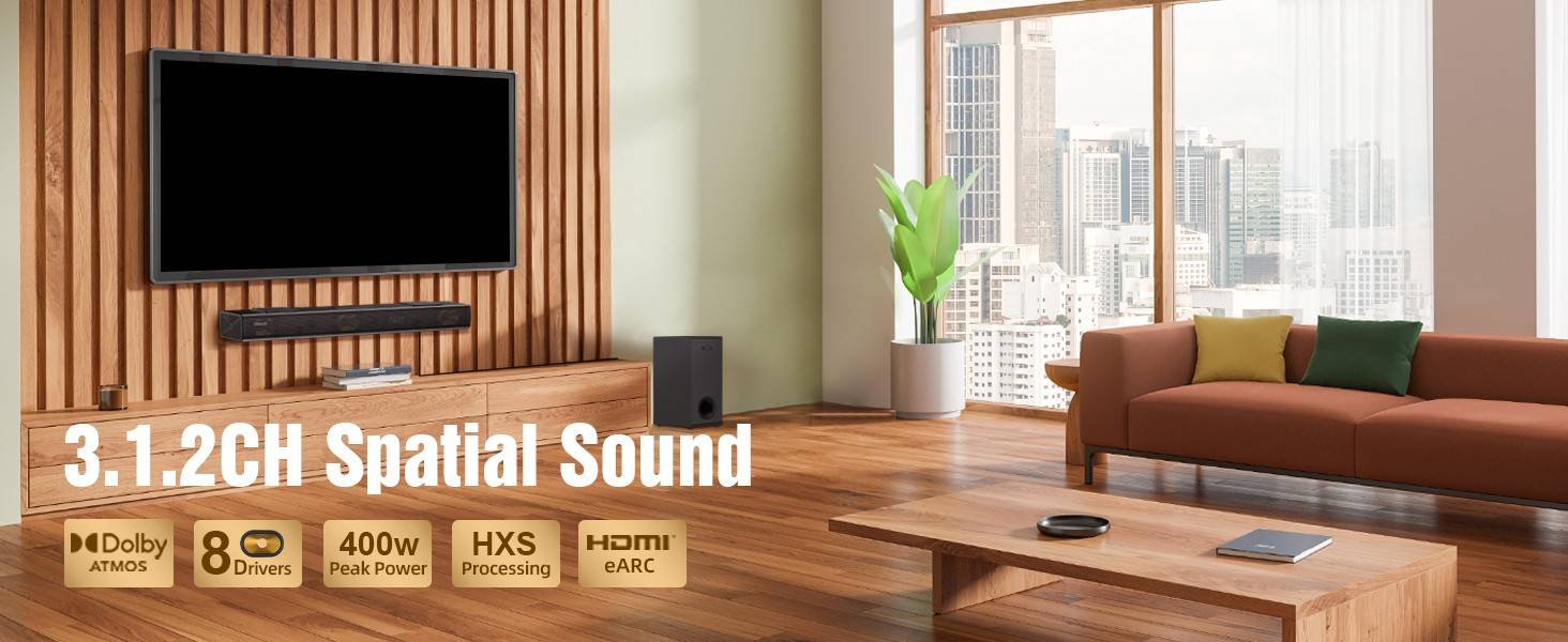 Hiwill A312 Dolby Atmos Sound Bar for Smart TV,400W Peak Power, Compact Bluetooth Soundbar Speaker, eARC/ARC/Optical for Home - EU Plug