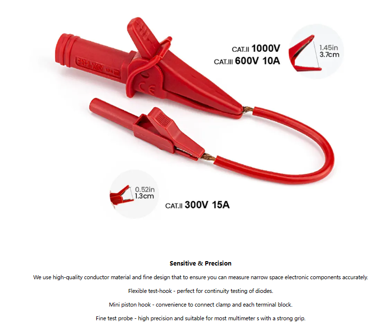 KAIWEETS KET05 Digital Multimeter Probe Soft Wire Needle Tip Universal Test Leads with Alligator Clip 1000V 10A
