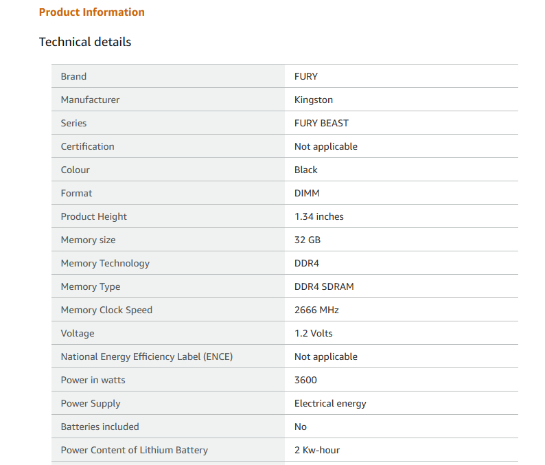 KF426C16BB/32 - FURY Beast 1.2V 2Rx8 288-pin DDR4 2666Mhz 32GB DIMM Memory for Desktop/Gamers, Black