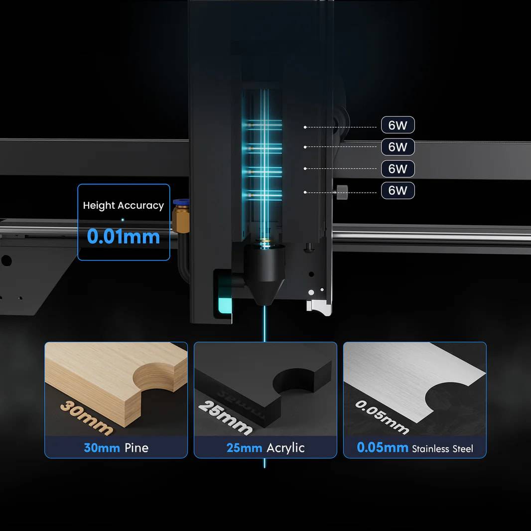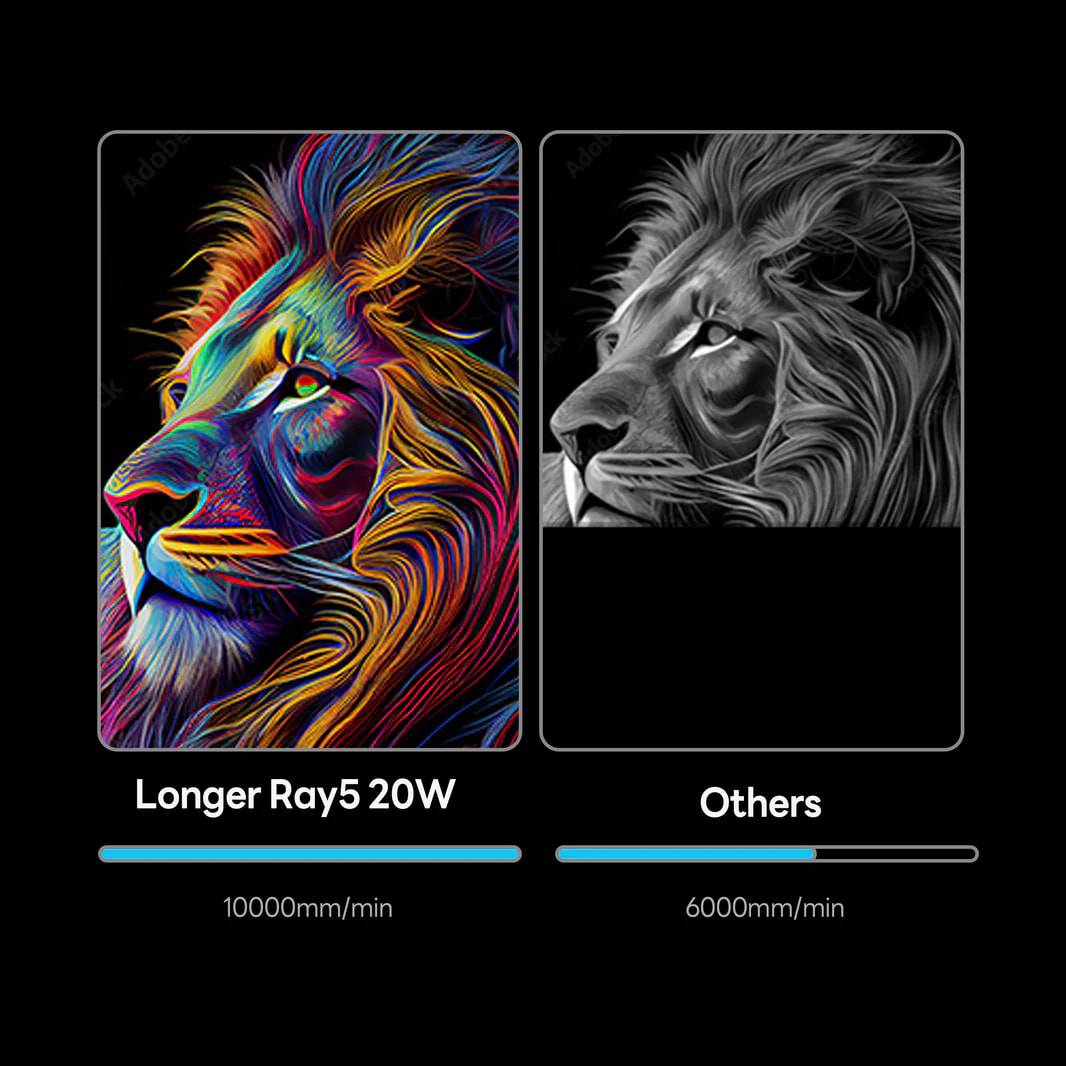 LONGER RAY5 20W laser engraving cutter, fixed focus, 0.08 x 0.1mm laser dot, color touch screen, 32-bit chipset, supports APP connection, 375 x 375mm working area