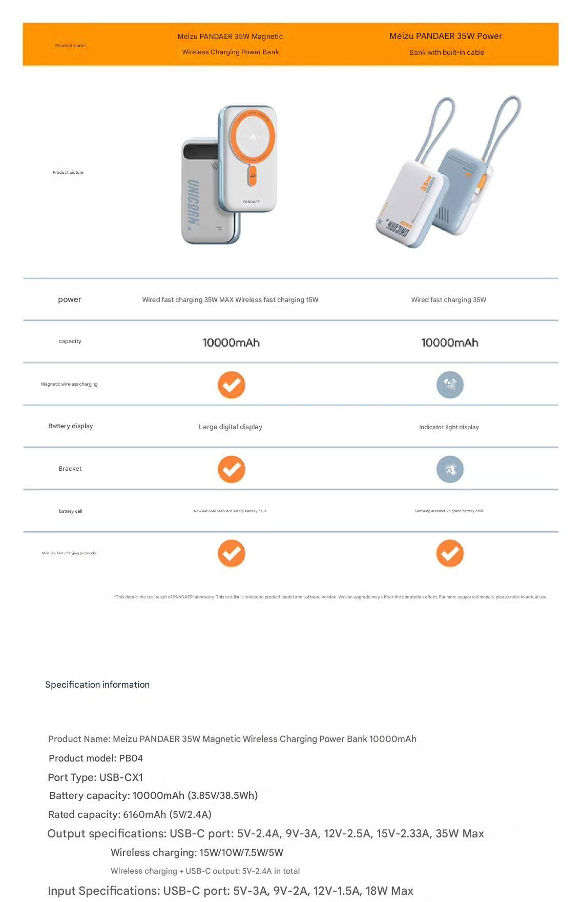 Meizu PANDAER 35W Magnetic Wireless Charging Power Bank Small and Portable Large Capacity 10000 mAh Power Bank