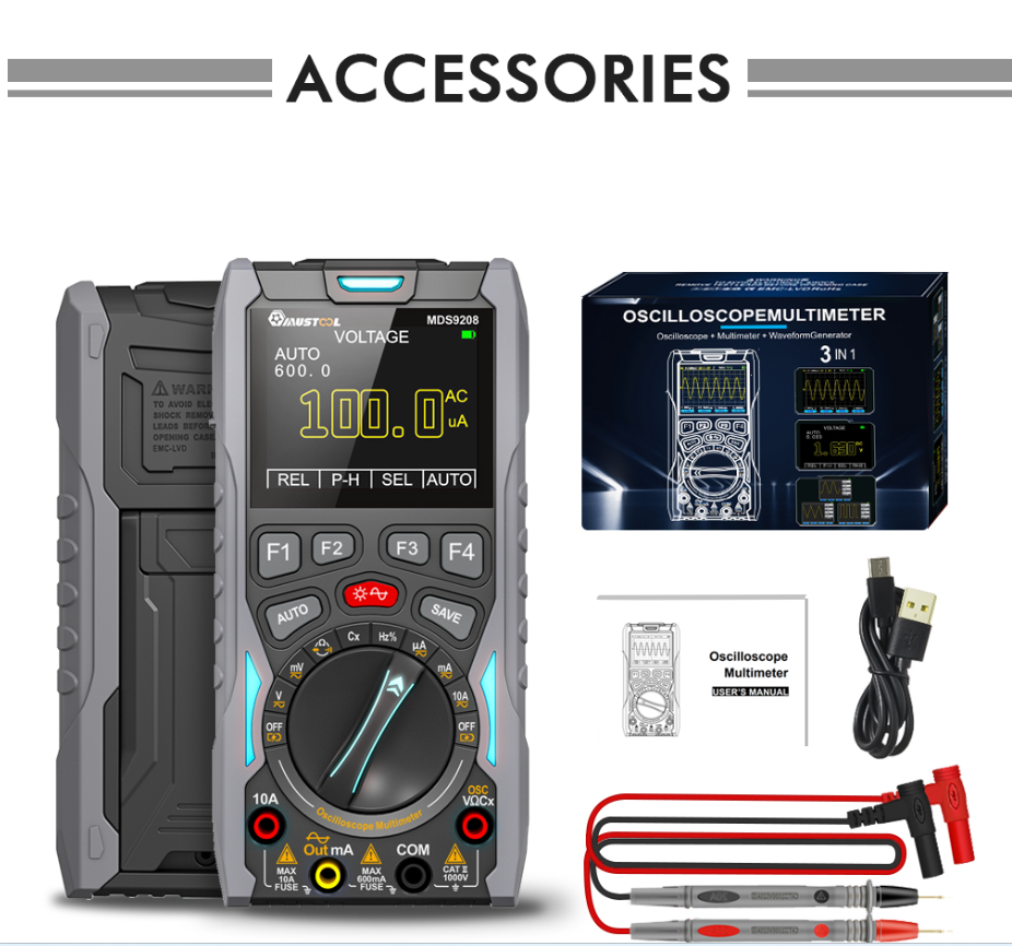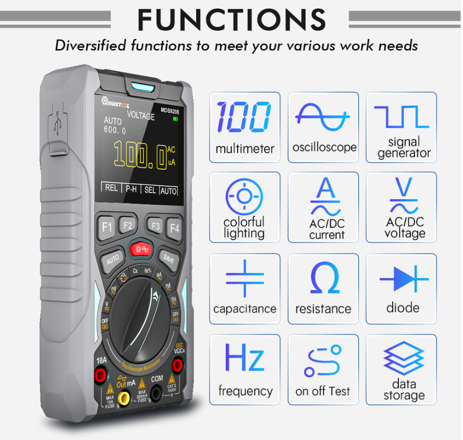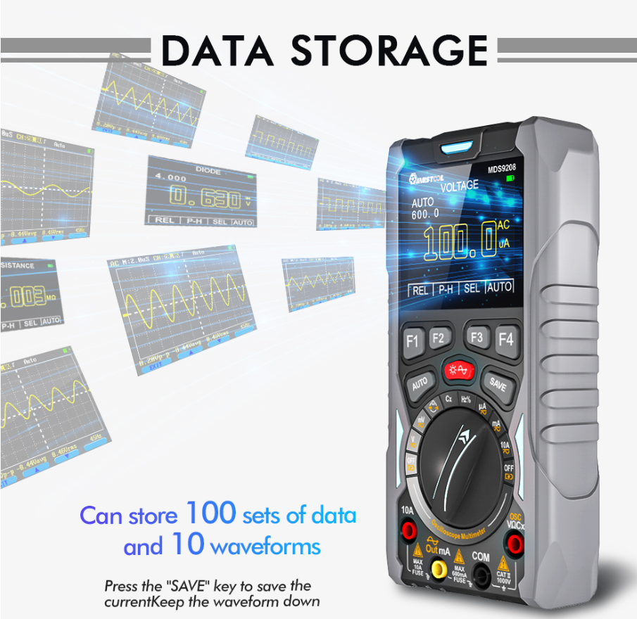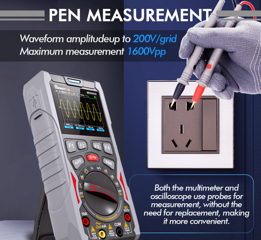 MUSTOOL MDS9208 3In1 Oscilloscope Multimeter Signal Generator 12MHz 50Msps Portable High Storage Capacity Low Power Consumption - MDS9208(EU stock)