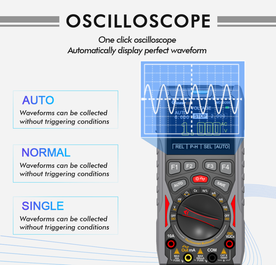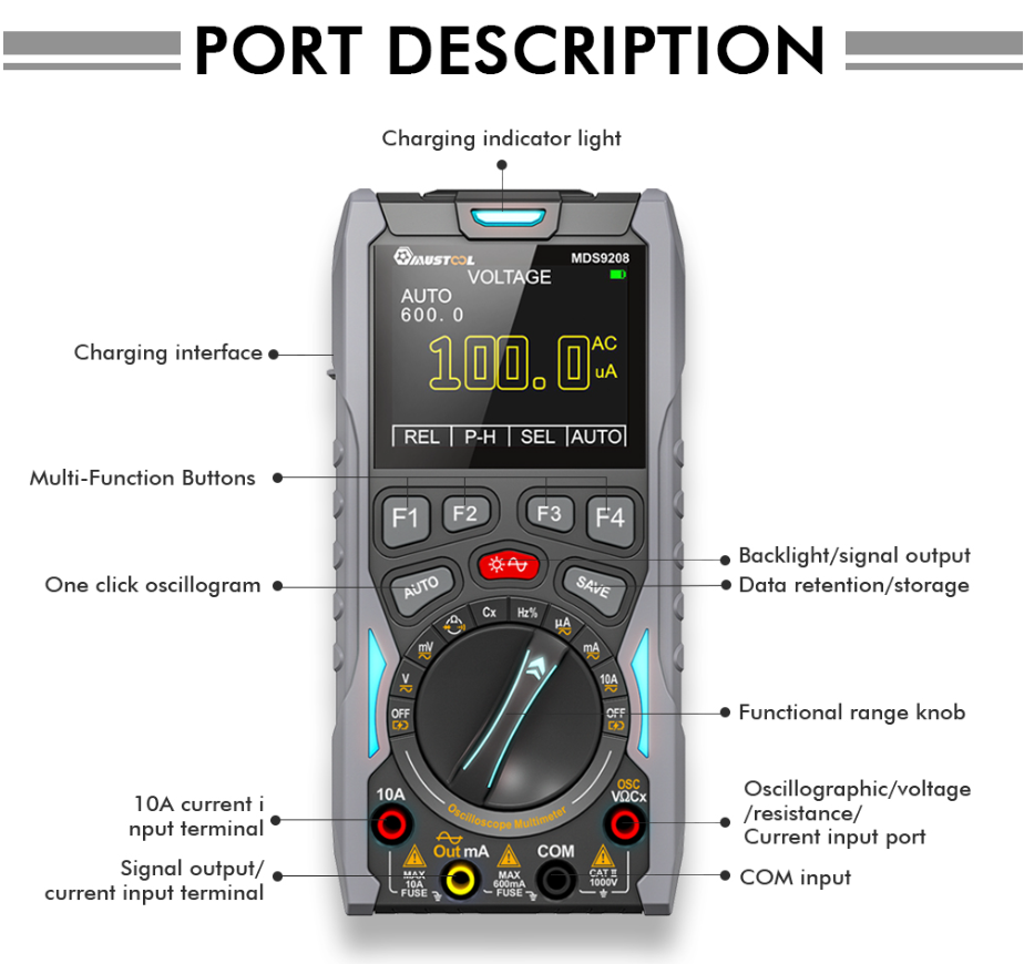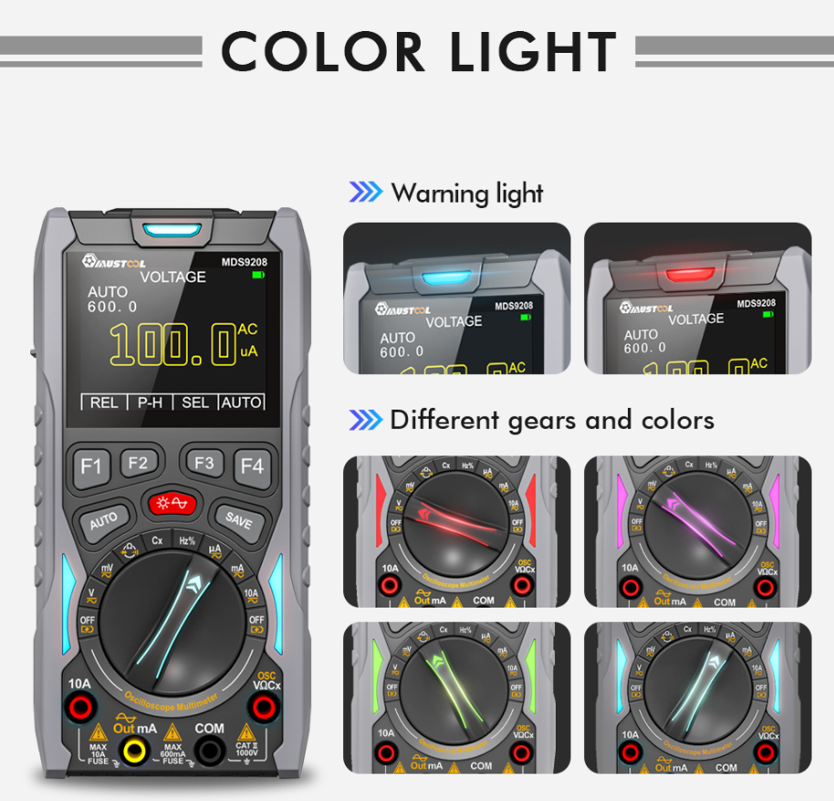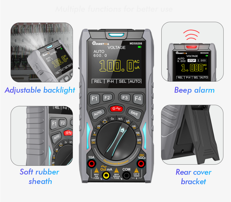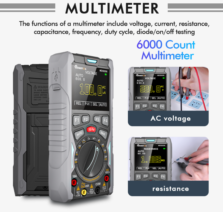 MUSTOOL MDS9208 3In1 Oscilloscope Multimeter Signal Generator 12MHz 50Msps Portable High Storage Capacity Low Power Consumption - MDS9208(EU stock)