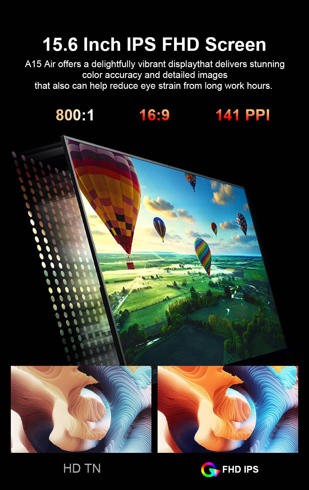 Model: A15 Air 2025 Color: Dark Gray Material: Full Plastic Dimensions (with foot pad): 357.4 × 229.3 × 19.85 mm Net Weight: 1750 g Package Contents: A15 Air 2025 ×1, Power Adapter ×1, User Manual ×1, Warranty Card ×1