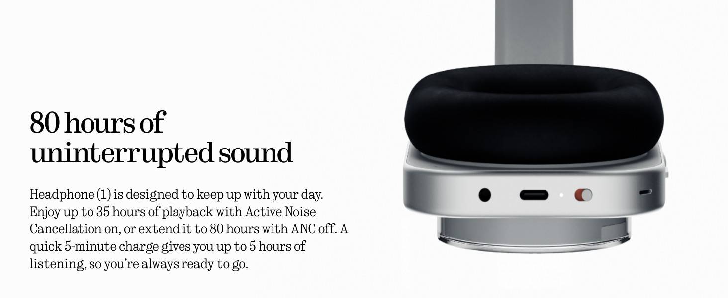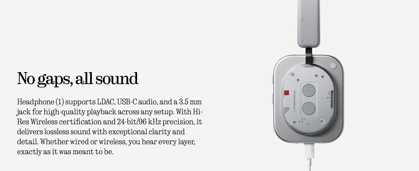 - Next level Hi-Fi Listening: Crafted in collaboration with British audio legend KEF (with 60+ years of expertise), the Nothing Headphone (1) combines cutting-edge audio engineering with expert sound tuning for a high-fidelity listening experience featuring a natural signature sound. Every note shines with perfect balance—exactly as the artists intended. These headphones support dual connection, LDAC, USB-C audio, and a 3.5 mm jack, ensuring high-quality playback across any setup.