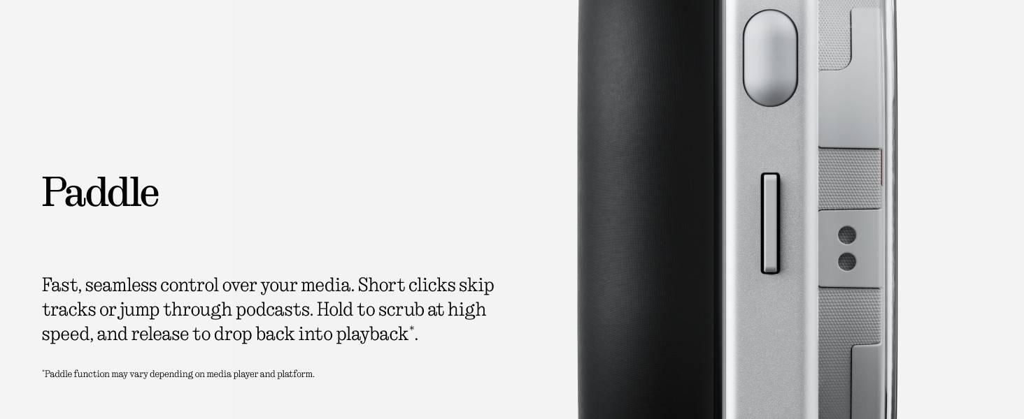 - Thoughtfully Designed Keeps It Simple: Roller: Adjust volume with a twist, click to play/pause, hold to switch noise modes. Paddle tab: Skip tracks with a tap, hold to fast-forward. Button: One-tap access to Spotify, podcasts, or favorites—no phone needed; All customizable in the Nothing X app. Stay in your flow; No distractions.