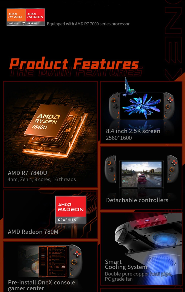 One Netbook OneXPlayer 2 Pro 5 in 1 Handheld Gaming PC 8.4'' 2K IPS Screen AMD Ryzen 7