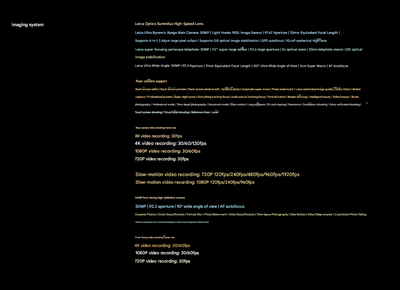 - Leica Optical Summilux High Speed Lens:Capture stunning photos with the Leica Optical Summilux High Speed Lens on the 50MP main camera.