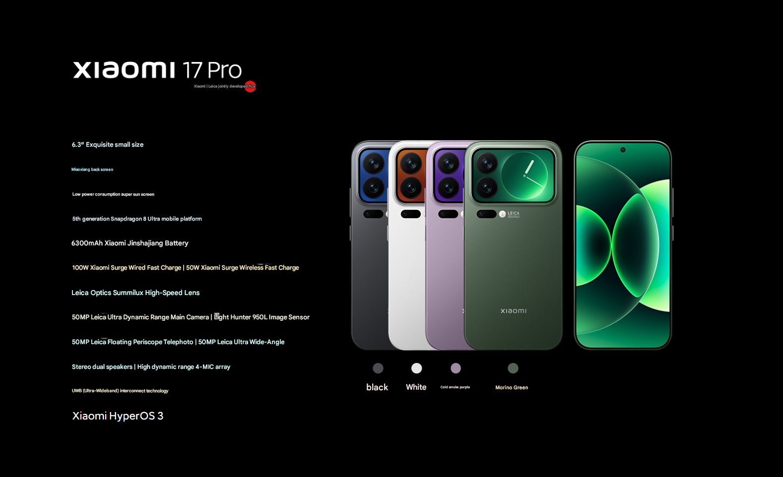 Brand New Xiaomi 17 Pro Smartphone Snapdragon 8 Elite Gen5 6300mAh Battery 100W Hyper Charge 6.3" CN version NFC Dual Screen