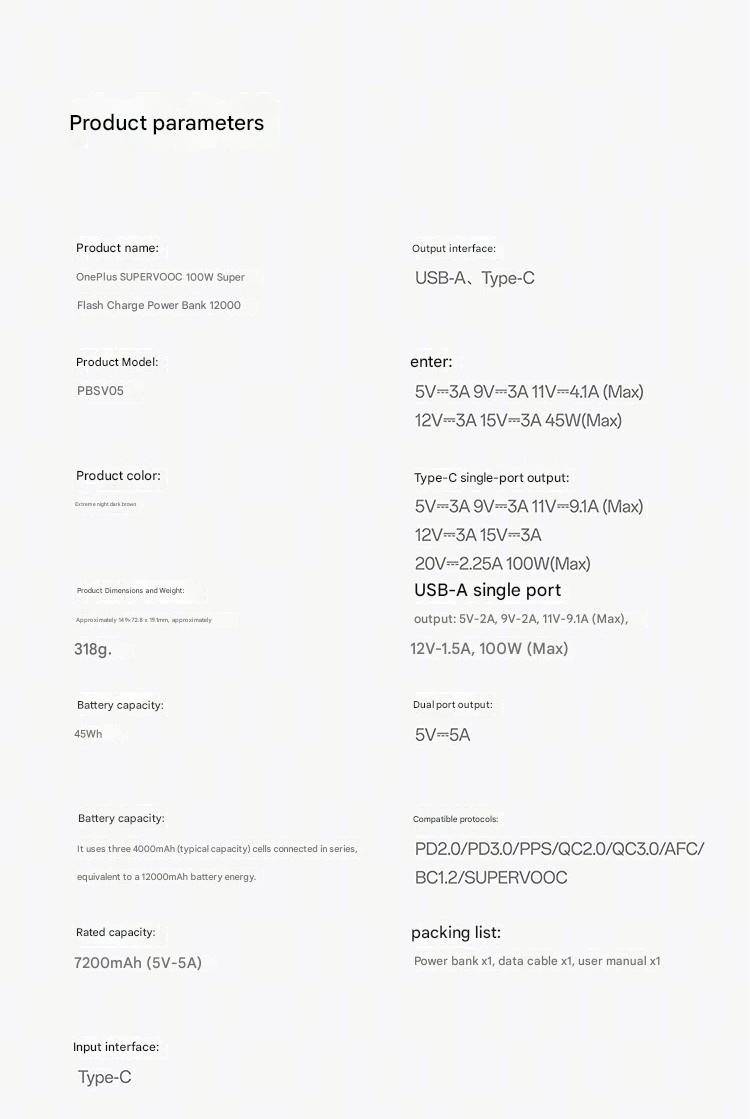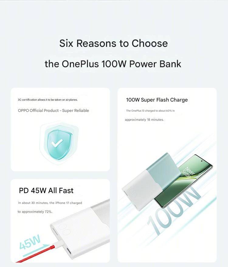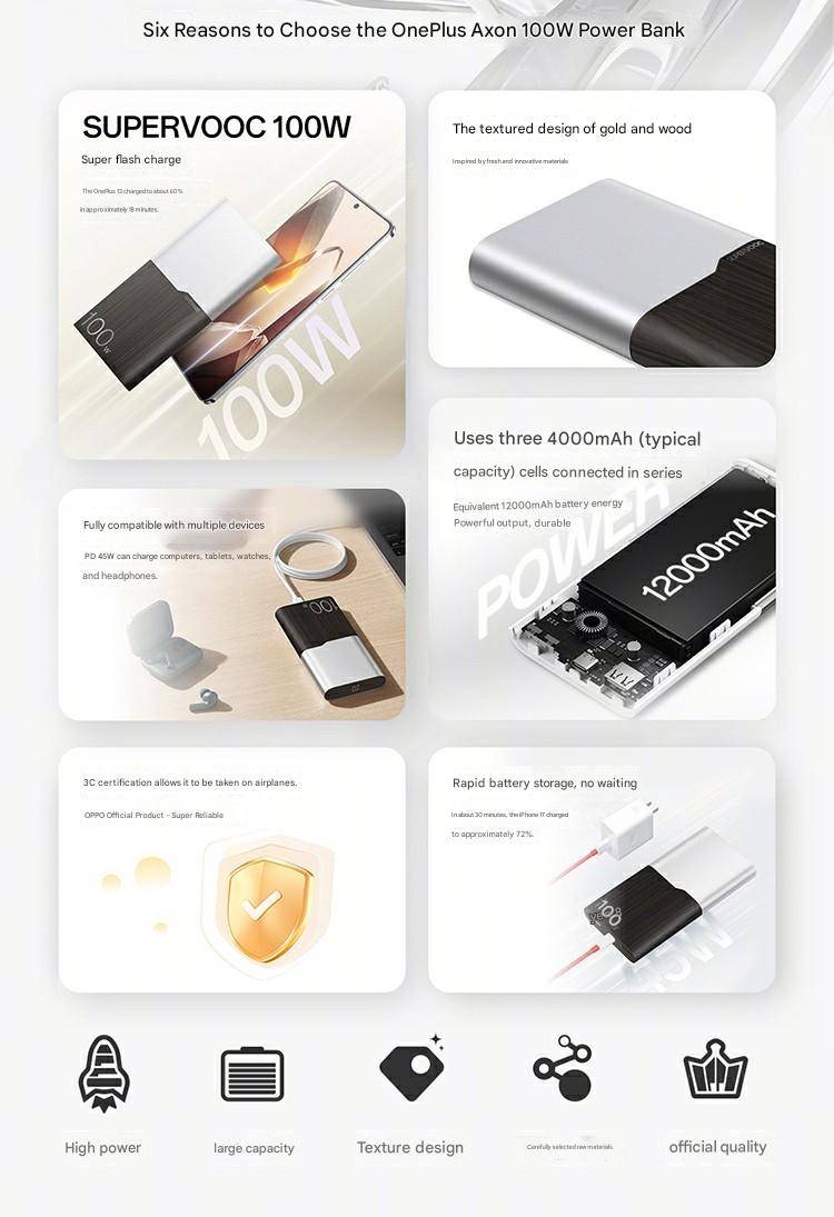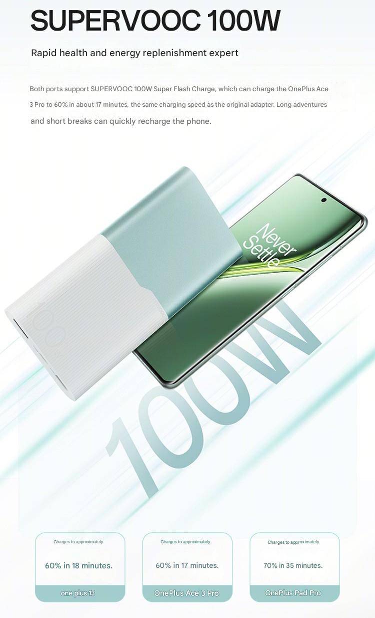 Original OnePlus 100W SuperVOOC Flash Charge Power Bank with 12000mAh High-Capacity Battery