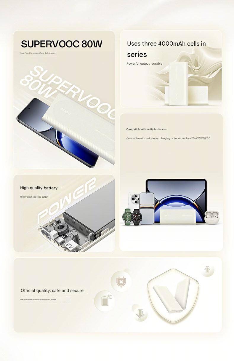 Original OPPO 80W Fast Charging Power Bank with Large Capacity (12000mAh)