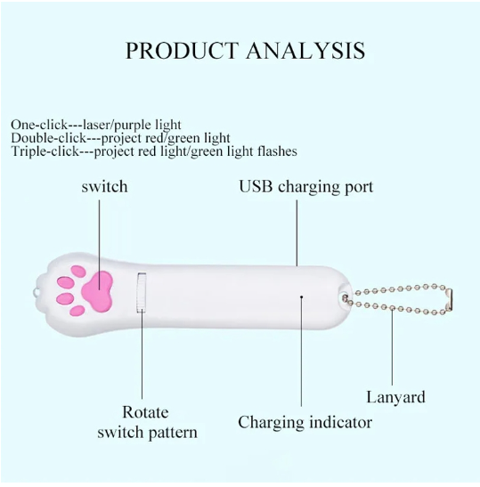 Pet Projection Toy USB Rechargeable LED Pattern Projector Cat Teaser Interactive Toys, Spec: D Type -UV Light+Red Light